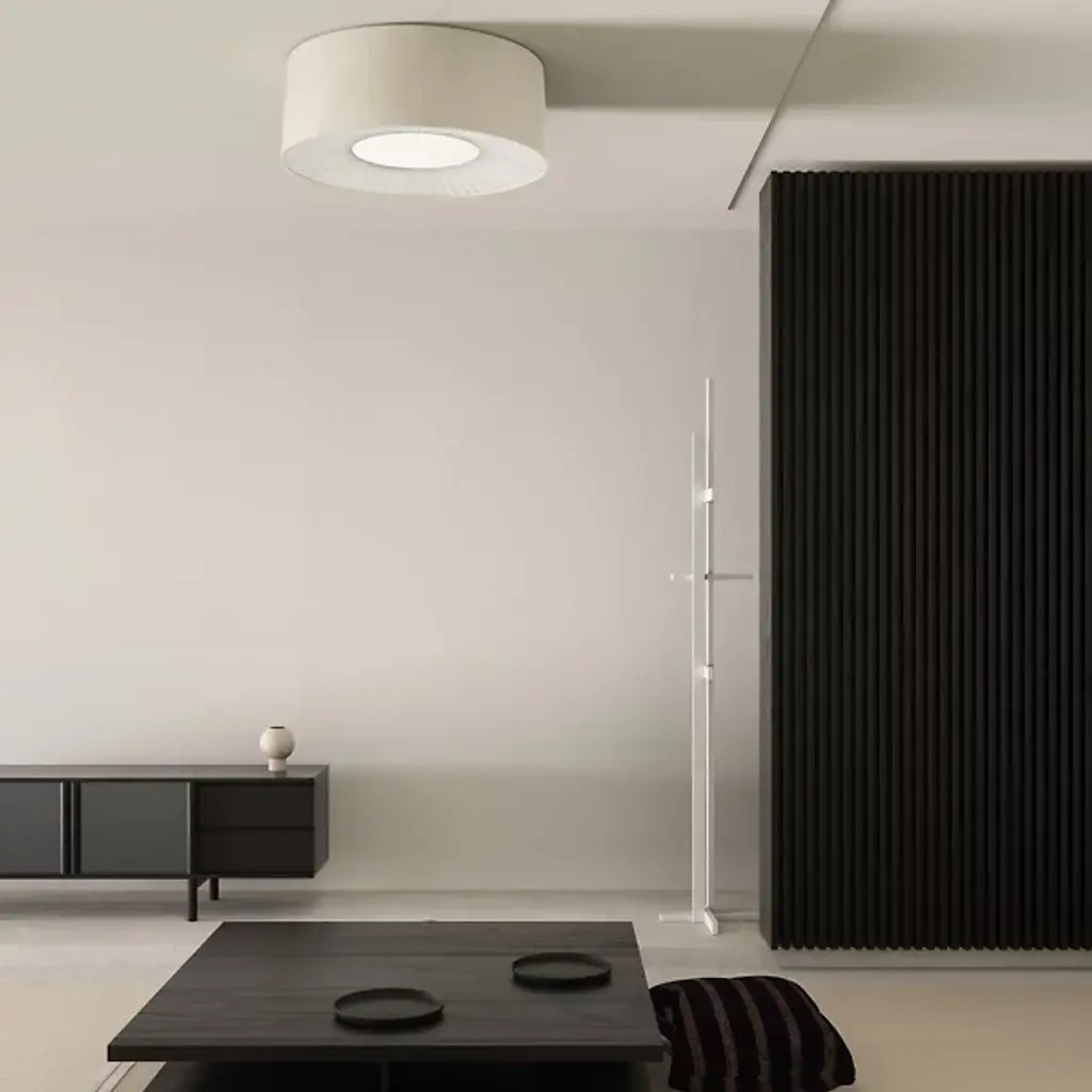 Easy on the eyes, soft to the touch. The Lightecture Velvet Flushmount gets its name from the velvet-like texture of the specialty Micro 2000 fabric (a poly/cotton blend) used to make the shade. The softness continues through the strips of ponge fabric that make up the bottom diffuser. Sizes range from just over two feet to more than five feet around.