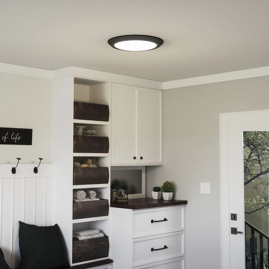 Available in four finishes and four sizes, the Verge flush mount is suited for a variety of room applications. In your choice of Earth Black, Brushed Nickel, White or Oil-Rubbed Bronze, it is featured in sizes of 7.5, 12, 16 or 20. The domed white acrylic shade is illuminated with integrated LED technology and the thick canopy adds depth to the simple structure.