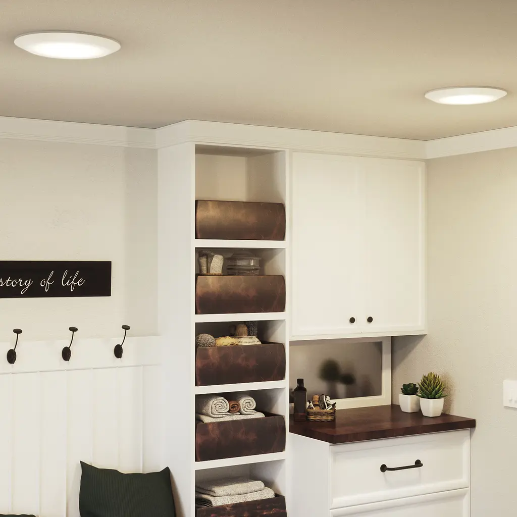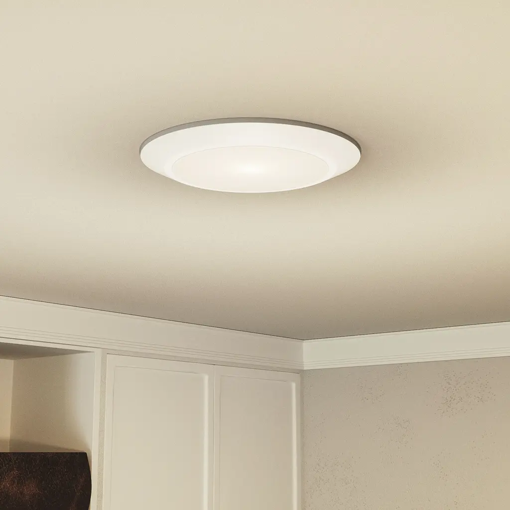 Available in three finishes and four sizes, the Verge flush mount is suited for a variety of room applications. In your choice of brushed nickel, white or oil-rubbed bronze, it is featured in sizes of 7.5, 12, 16 or 20. The domed white acrylic shade is illuminated with integrated LED technology and the thick canopy adds depth to the simple structure.