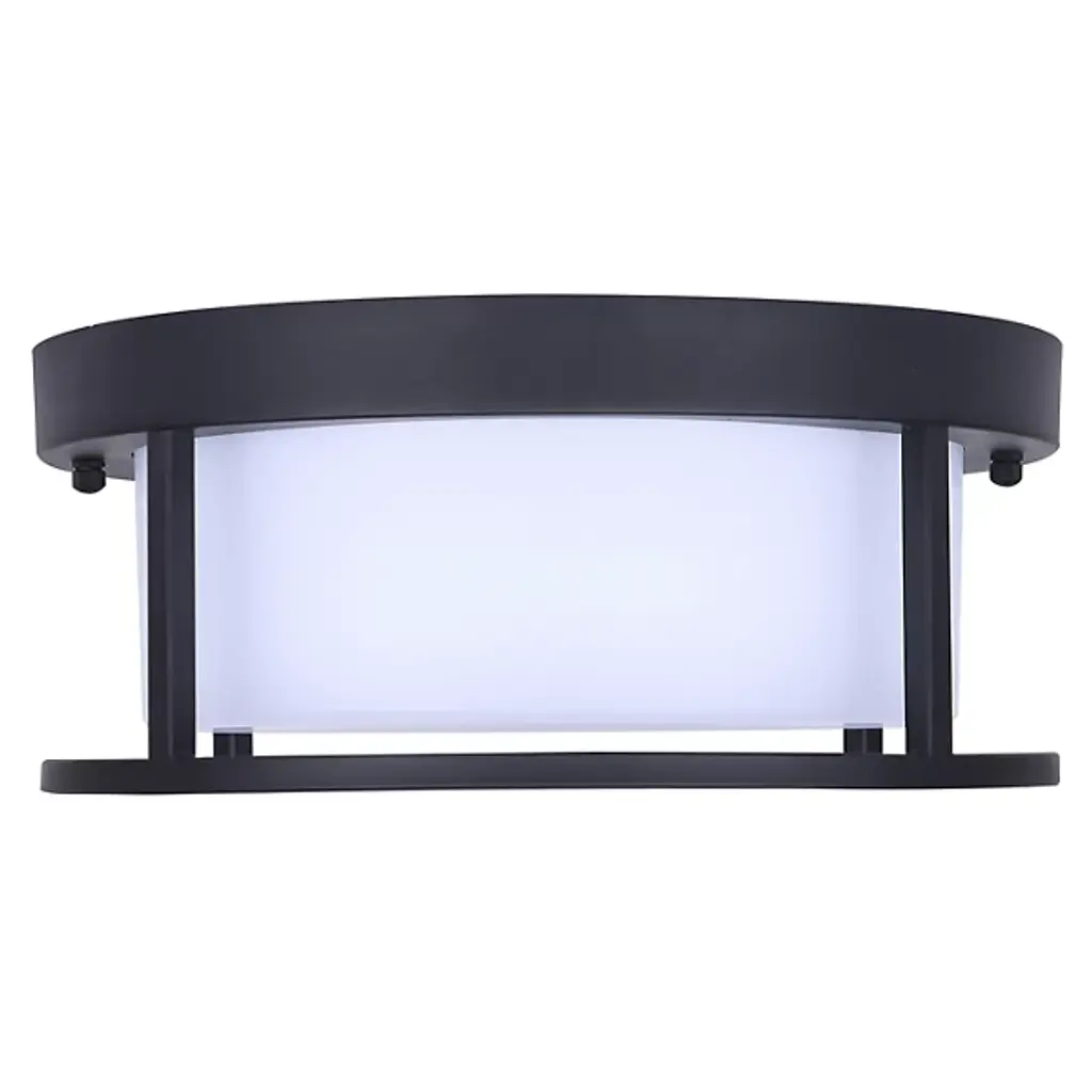 The Vero LED Outdoor Flushmount from Canarm brings contemporary style and even illumination to exterior spaces. Designed with integrated LED technology, this fixture is dimmable and features a switch, allowing you to shift between 3000K, 4000K, and 5000K color temperatures for the perfect outdoor ambiance. Its durable, circular construction and wet-listed rating make it ideal for patios, porches, or entryways. With a clean metal frame and a drum-shaped acrylic shade able to deliver soft, even lighting, flushmount is a practical and presentable outdoor lighting solution.
