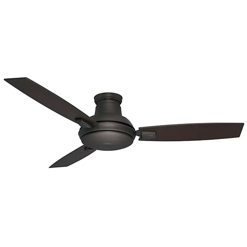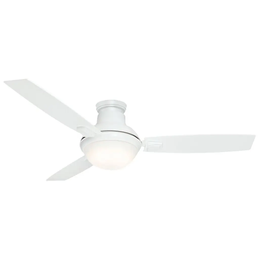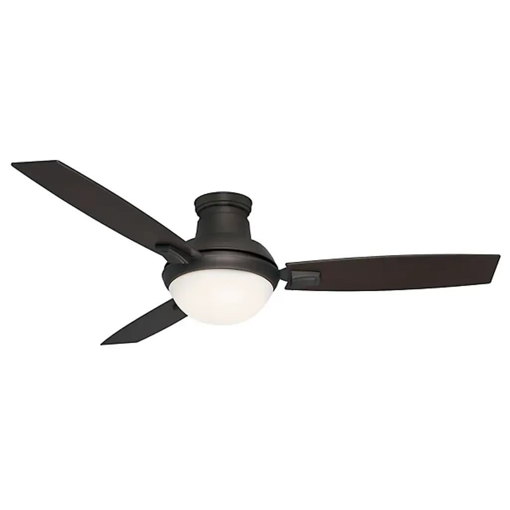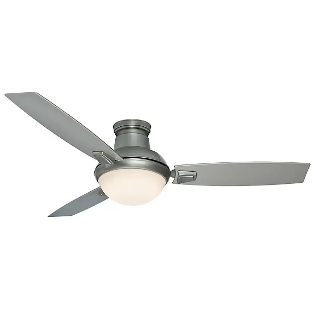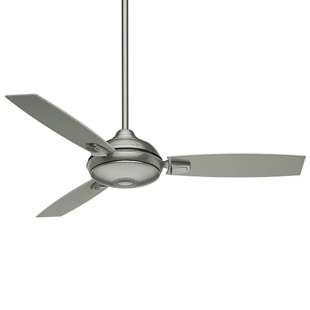 Like its 44” little brother, the Casablanca Fan Company Verse 54 Inch Ceiling Fan is wonderfully vers-atile, but is meant for larger spaces. Its clean lines and minimalist form fit well with contemporary, transitional, or casual settings, for both indoor and covered outdoor locations. A set of three flat-edged blades is included, as well as an integrated LED light kit and optional no-light cap. Comes with downrod sleeve that can transform your downrod fan to a sleek flushmount fan.