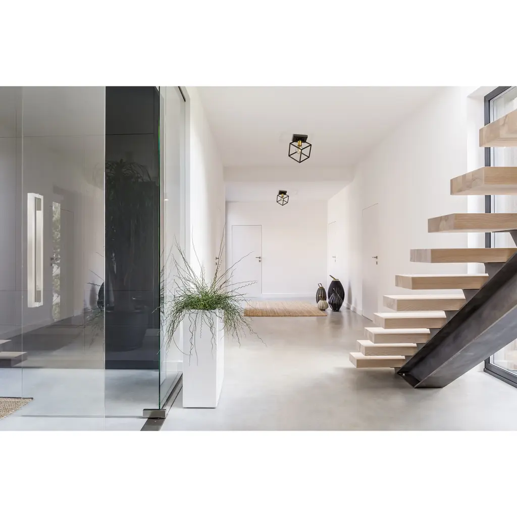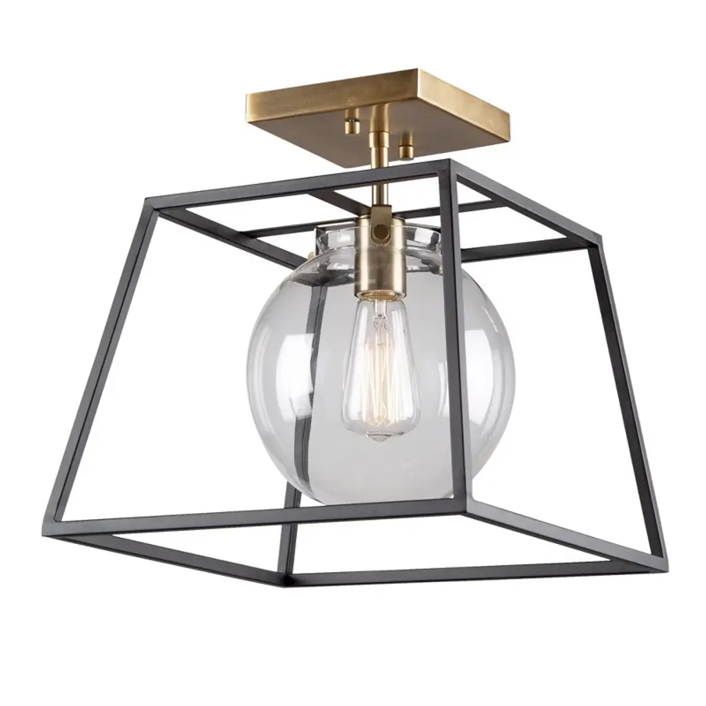 Crisp lines and a modern edge highlight the design of this two-tone one-light flush mount light for your home. It's fashioned with a bronze and olde brass finish with a cube-shaped shade for a look that's eclectic and timeless. It's an eye-catching design that will be a showpiece light in any dining room, foyer, bedroom, or home office.