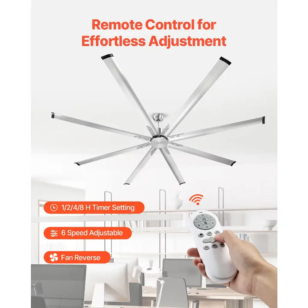 Vevor 96 In Ceiling Fan Without Light, 6-speed Remote Control, Aluminum 8-blade, Reversible Dc Motor, Modern Low Profile Flush Mount Fan For Bedroom
