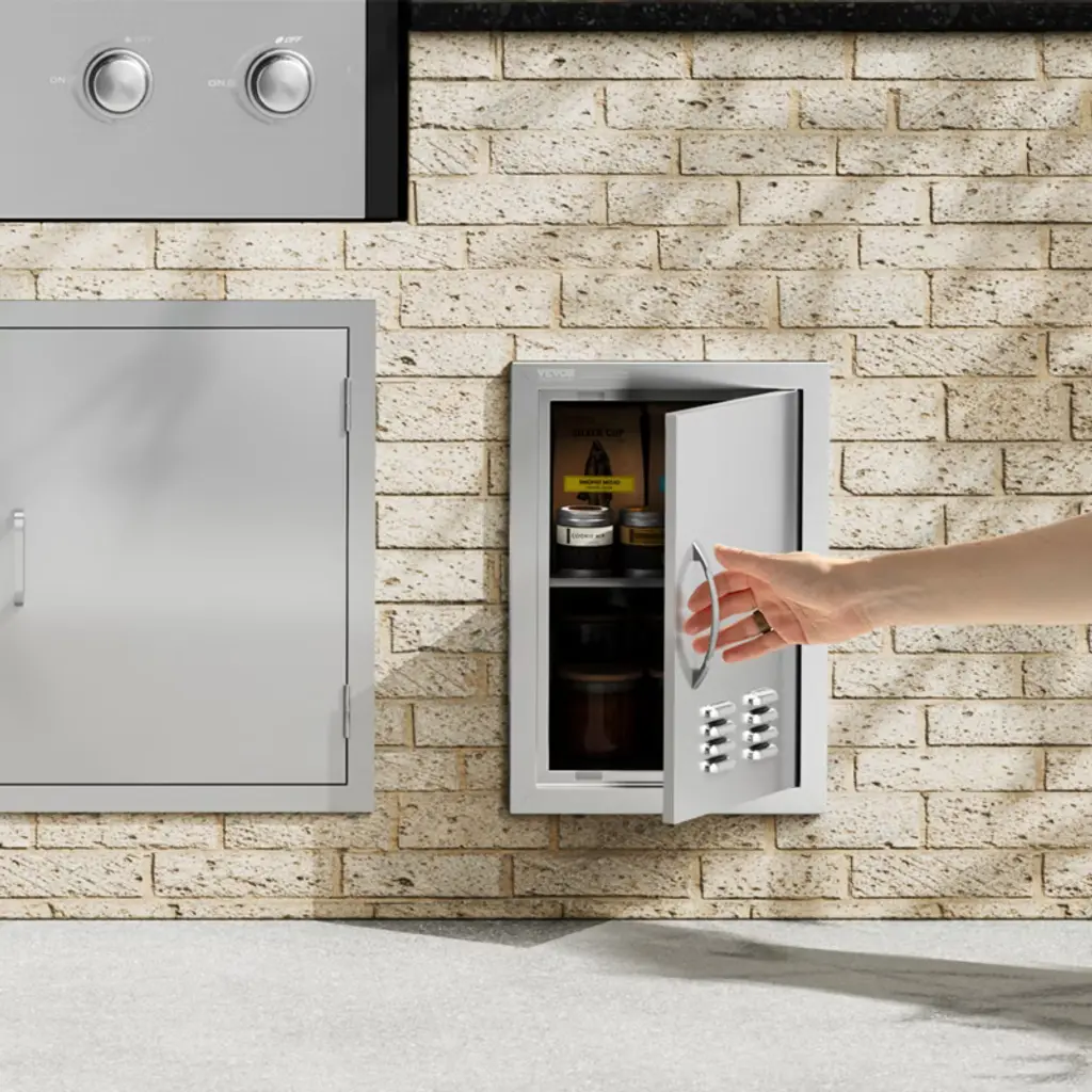 Vevor Bbq Access Door, 14w X 20h Inch Single Outdoor Kitchen Door, Stainless Steel Flush Mount Door, Wall Vertical Door With Handle And Vents