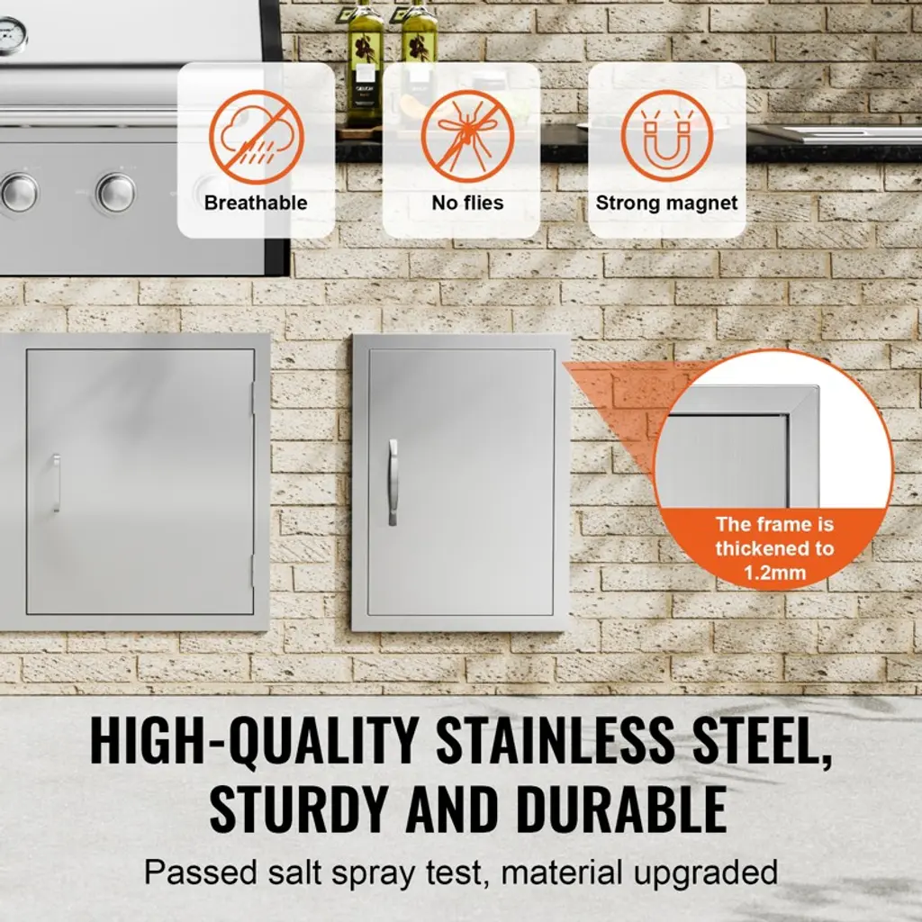 Vevor Bbq Access Door, 16w X 22h Inch Single Outdoor Kitchen Door, Stainless Steel Flush Mount Door, Wall Vertical Door With Handle