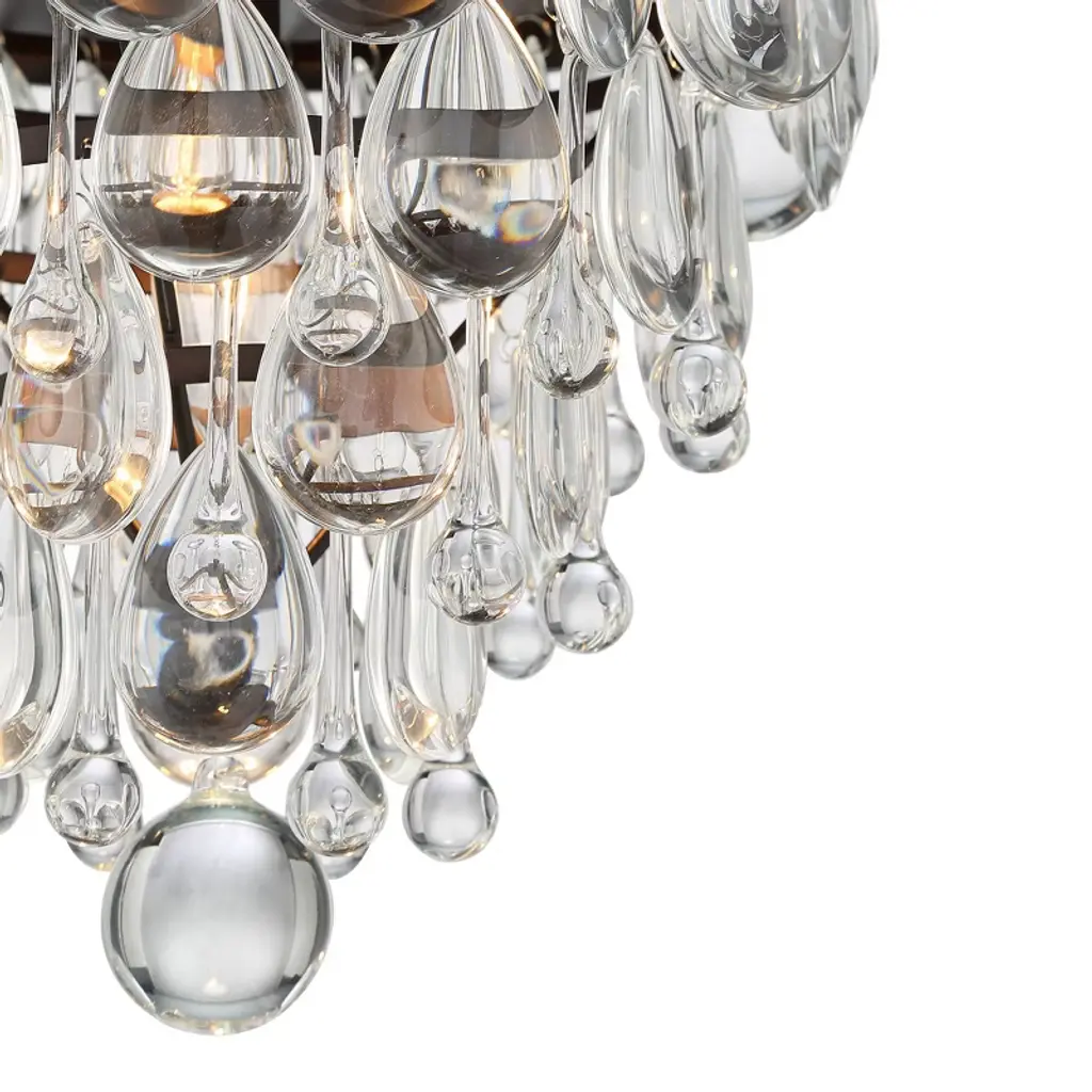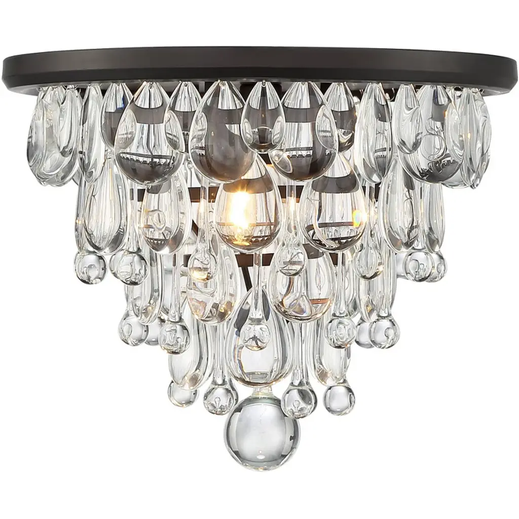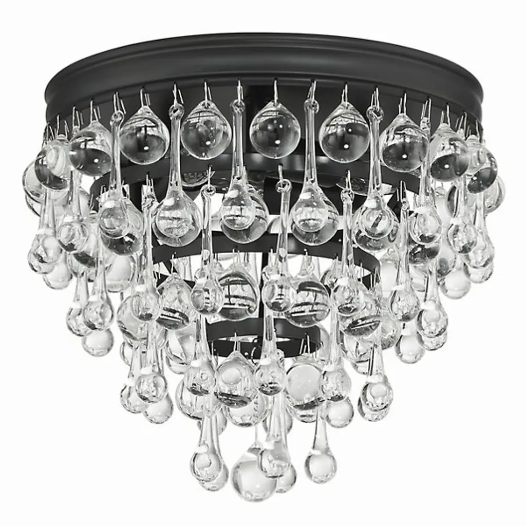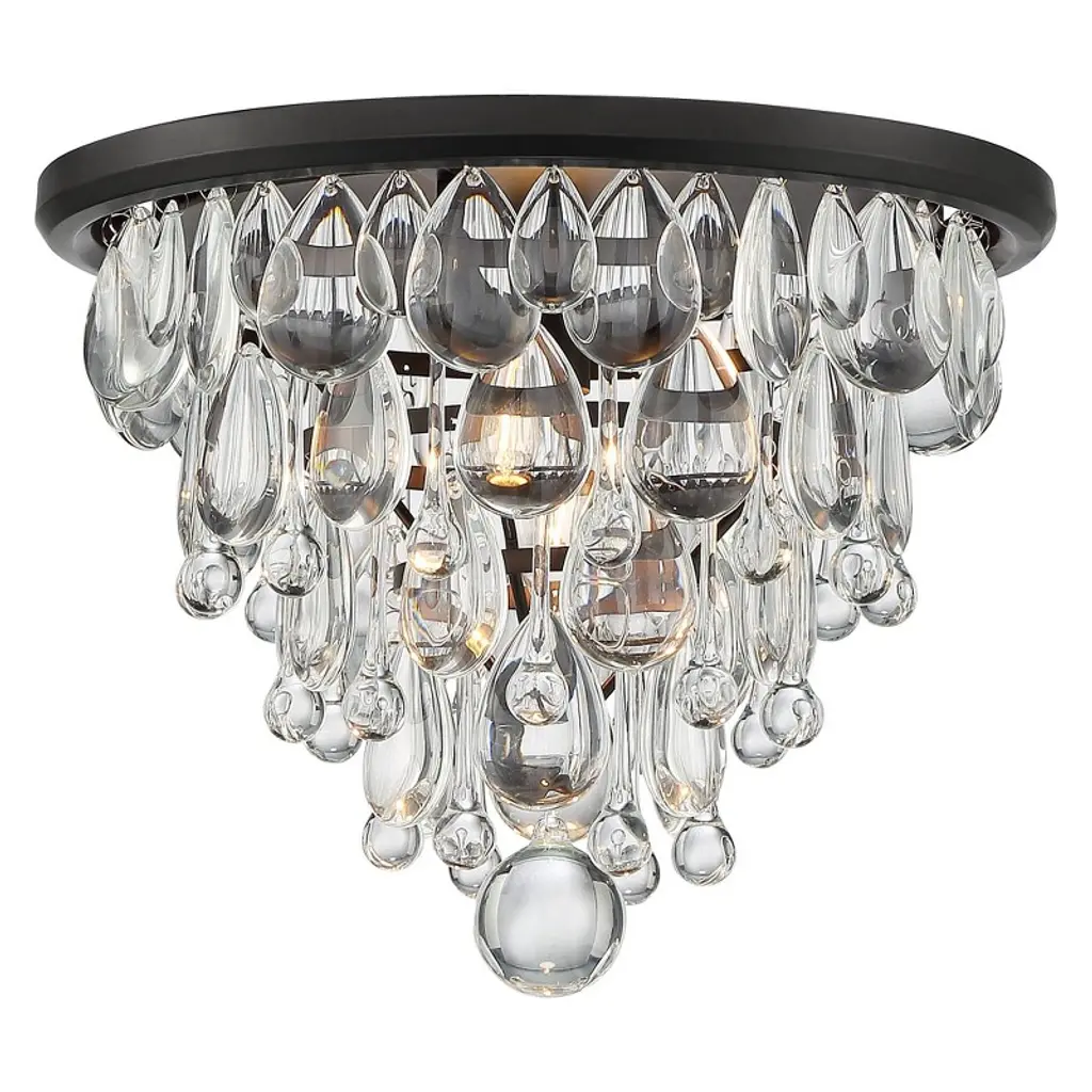 Brighten up your living space with this contemporary flushmount ceiling light from Vienna Full Spectrum. A round bronze finish metal frame supports an intriguing shade made of crystal drops in different size and shapes. Elegant and stylish, this ceiling light is perfect for adding a touch of refined glamour to any room.