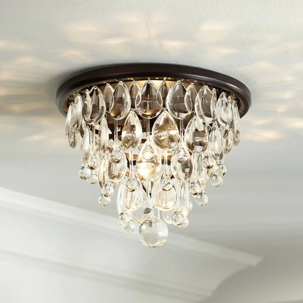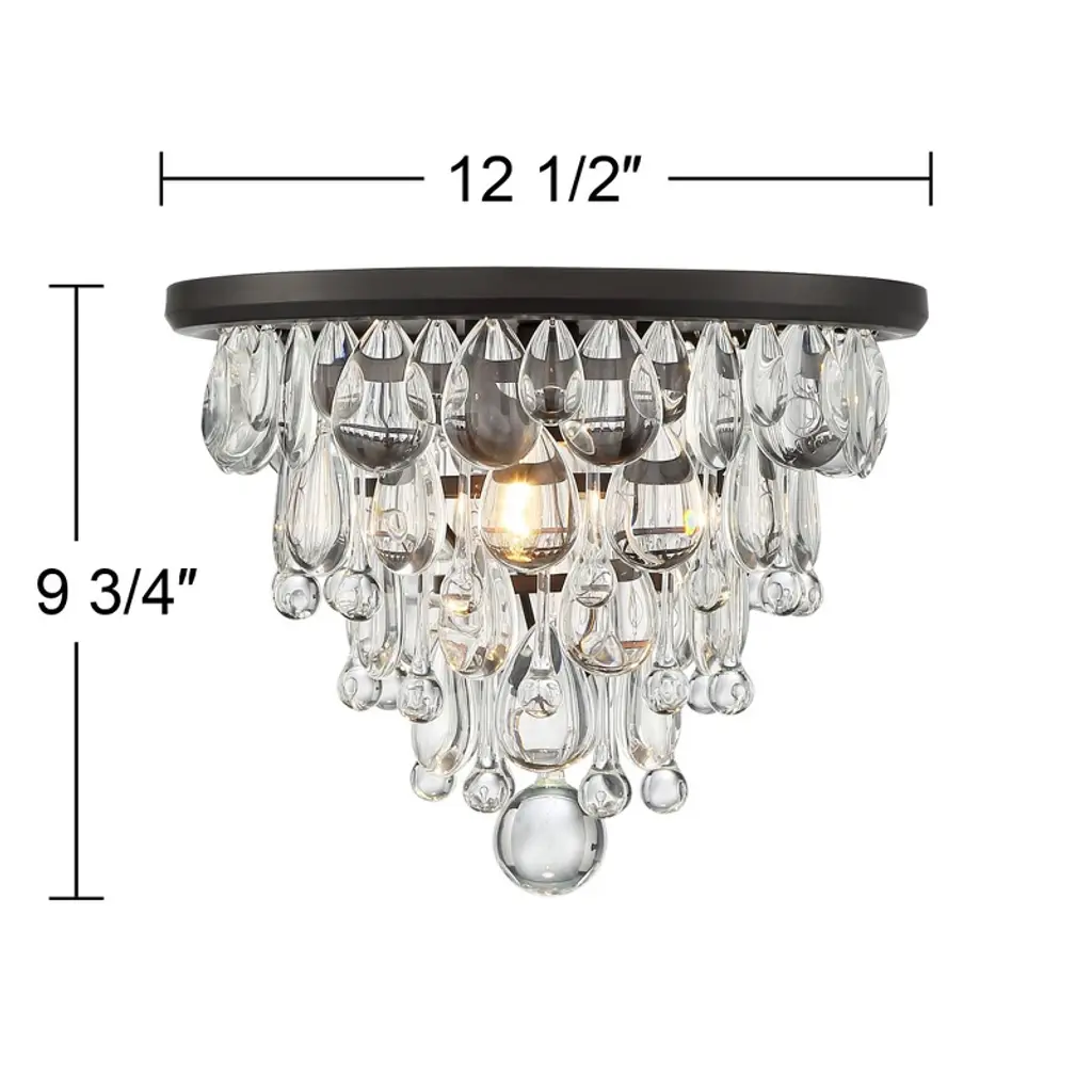 Vienna Full Spectrum Lorraine Modern Ceiling Light Flush Mount Fixture 12 1/2" Wide Bronze Crystal Drops Shade For Bedroom Kitchen Living Room Hallway