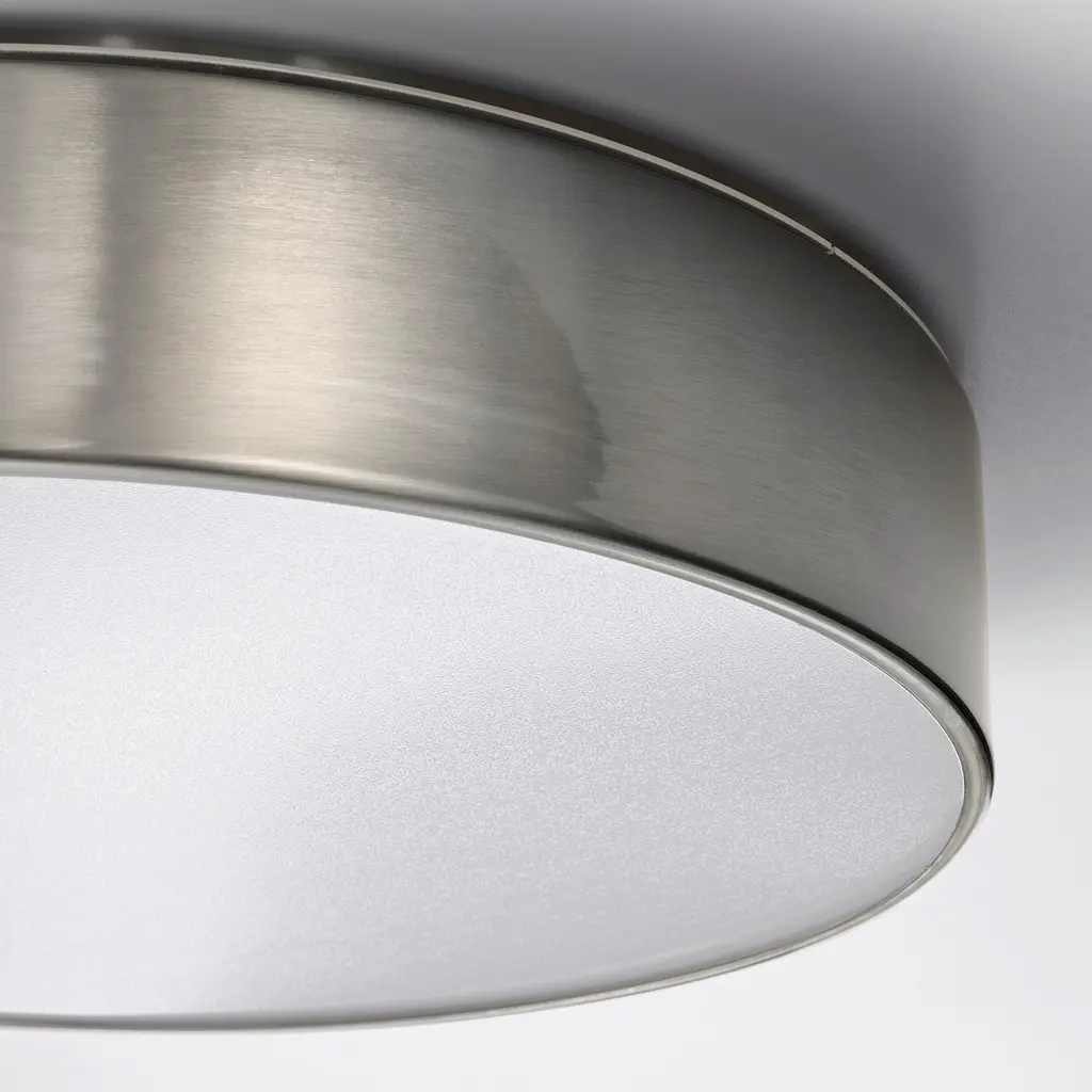 VIRRMO LED ceiling lamp - nickel plated 14 " 800 Lumen. Gives a good general light. The LED light bulb consumes up to 85% less energy and lasts 10 times longer than incandescent bulbs. Built-in LED light source. Color Rendering Index (CRI): >80. Hardwired installation. Mounted with screws.