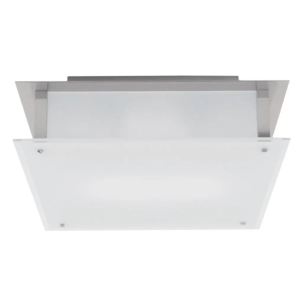 Vision - 16"sq. Flush Mount - Brushed Steel Finish - Frosted Glass Shade
