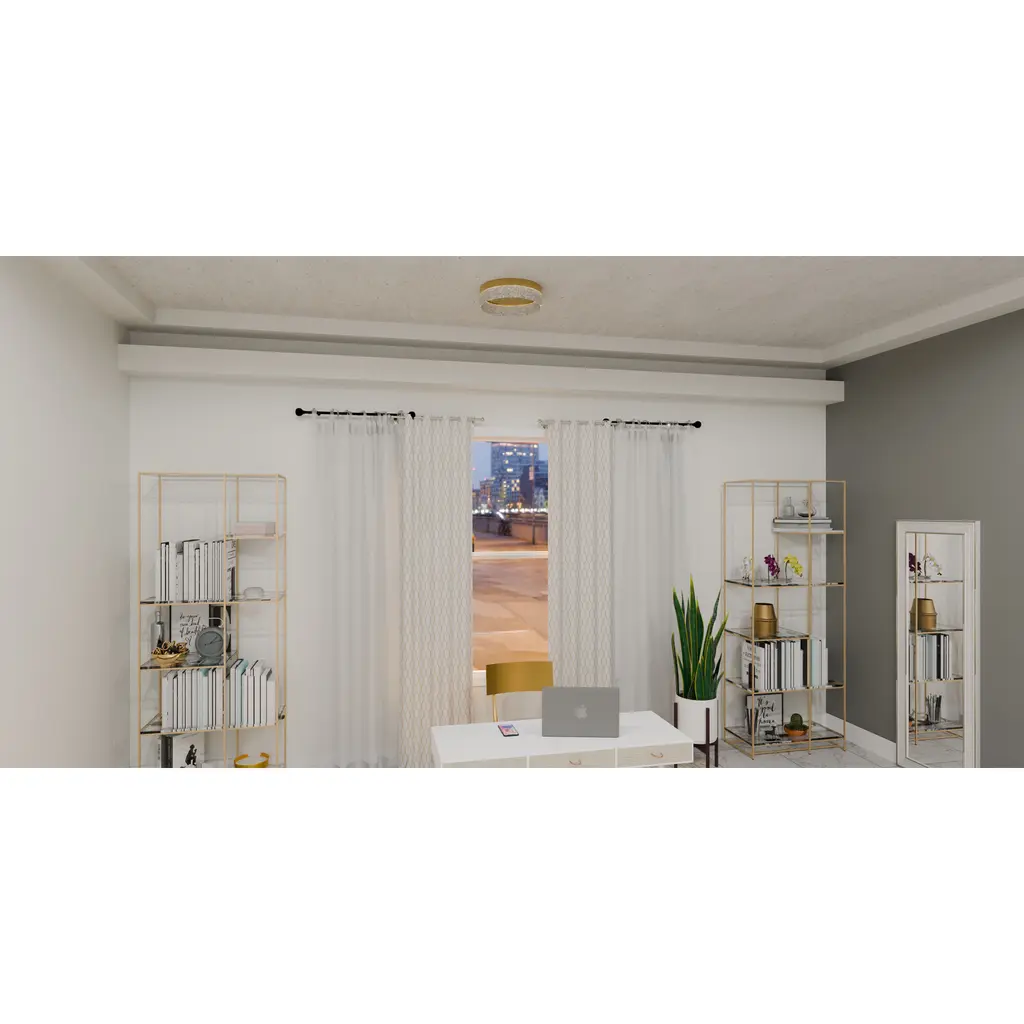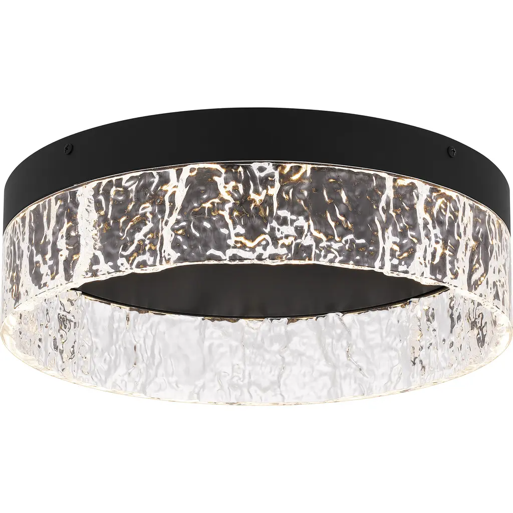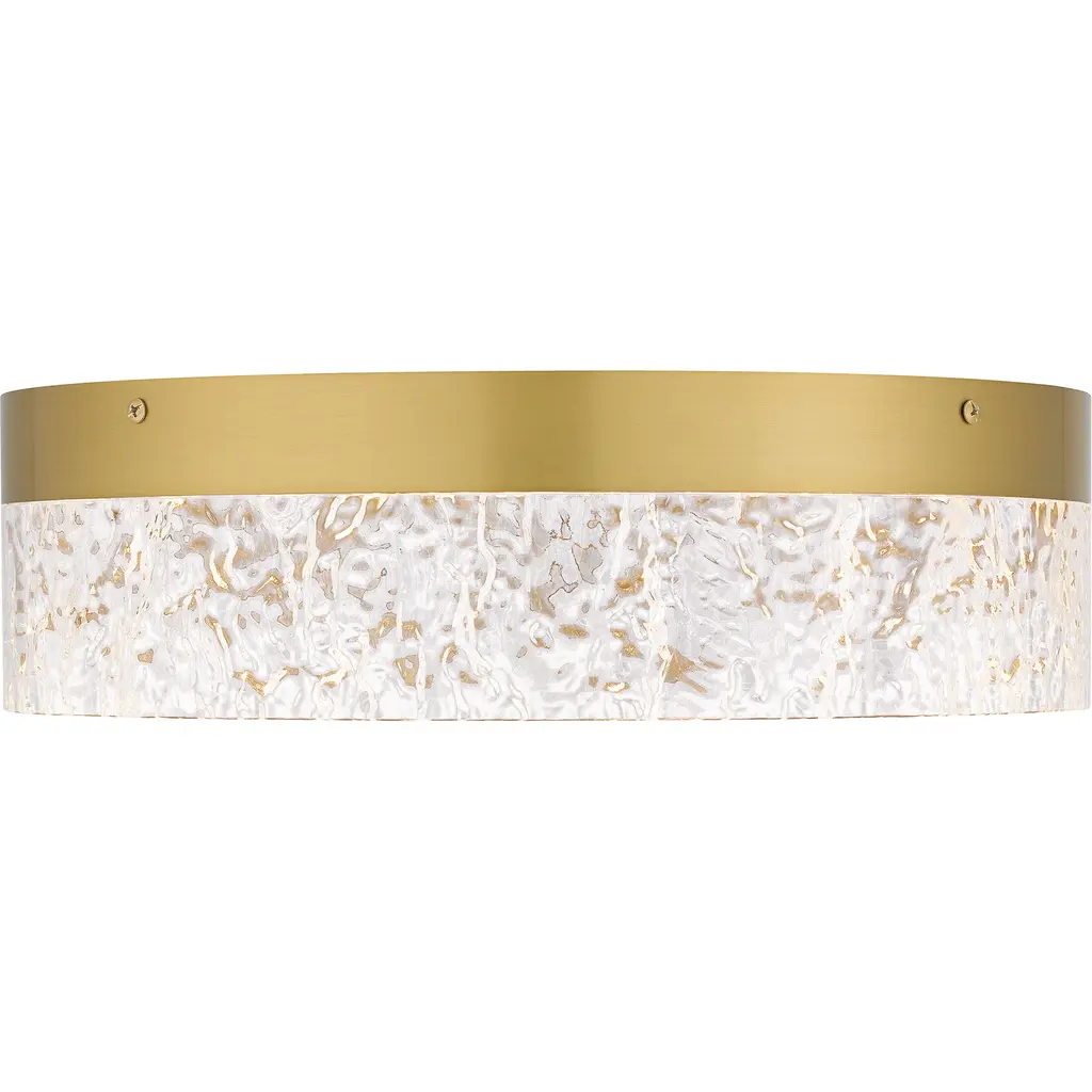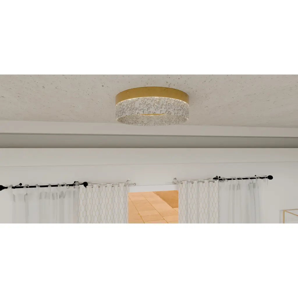 The Vistaria flush mount is simple with a contemporary flourish. The minimalist silhouette features a clear textured acrylic shade and your choice of matte black or brushed gold finish . An integrated LED is included for energy-efficient illumination. Use this versatile design in a range of spaces hallways, laundry rooms, entryways, bathrooms, and more.