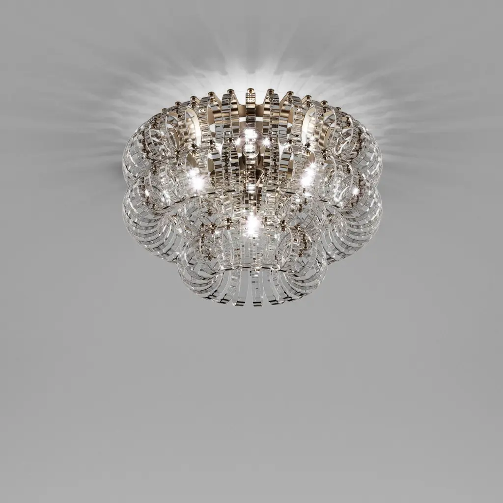 Vistosi Ecos Flush Mount In Crystal Striped Glass And Matt Bronze Frame