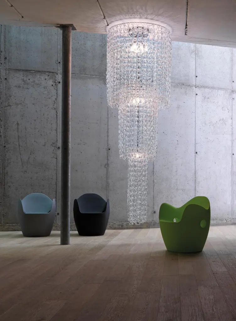A pure element: the crystal hook. It is the intuition of a master of Italian design, Angelo Mangiarotti, who in 1967 created the best seller of the Vistosi catalogue, Giogali. An iconic interweaving applied to the version one prefers. Specifications:Material: Glass, MetalLight source: E26 ULNo of bulbs: 7x60W E26 UL (120V/60HZ)Dimmer: DIM 1Year: 1967Glass finish: Crystal TransparentFrame finish: Matt bronze 1Dimensions: Ø 80 x 150 H cmAvailable in other glass finish options: Crystal Bronze, Crystal Black Nickel, Crystal Gold, Crystal Copper, Black, White, Crystal Silver, Crystal Amber, Crystal SmokyAvailable in other frame finish option: Glossy chrome Available in other size options: Ø 40 x 30, Ø 50 x 35, Ø 60 x 35, 65 x 47, Ø 80 x 42, Ø 100 x 350, Ø 100 x 240 cmPlease inquire about customization options.