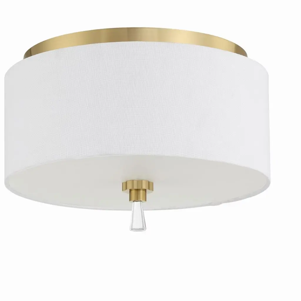 Visual Comfort Walker Modern Gild Metal Cream Linen Flush Mount - Small