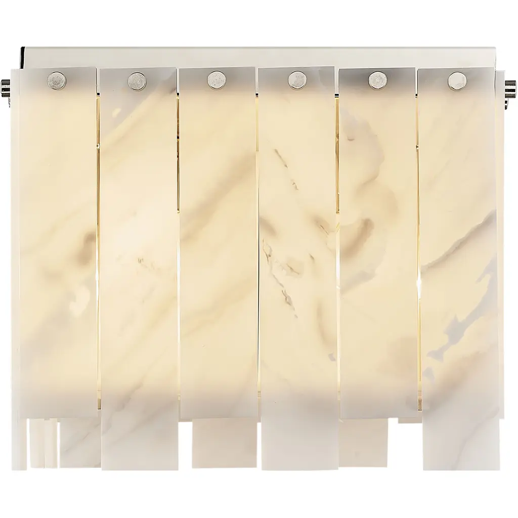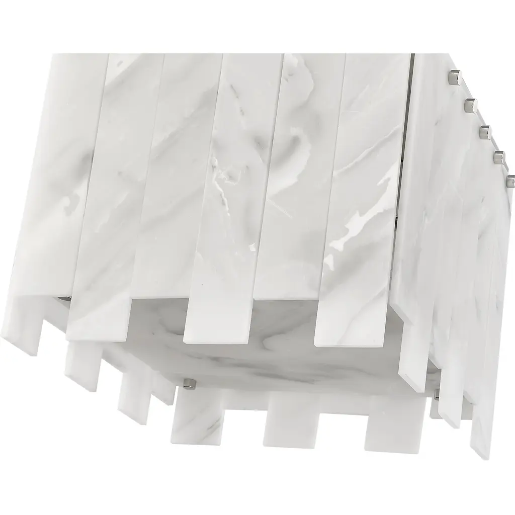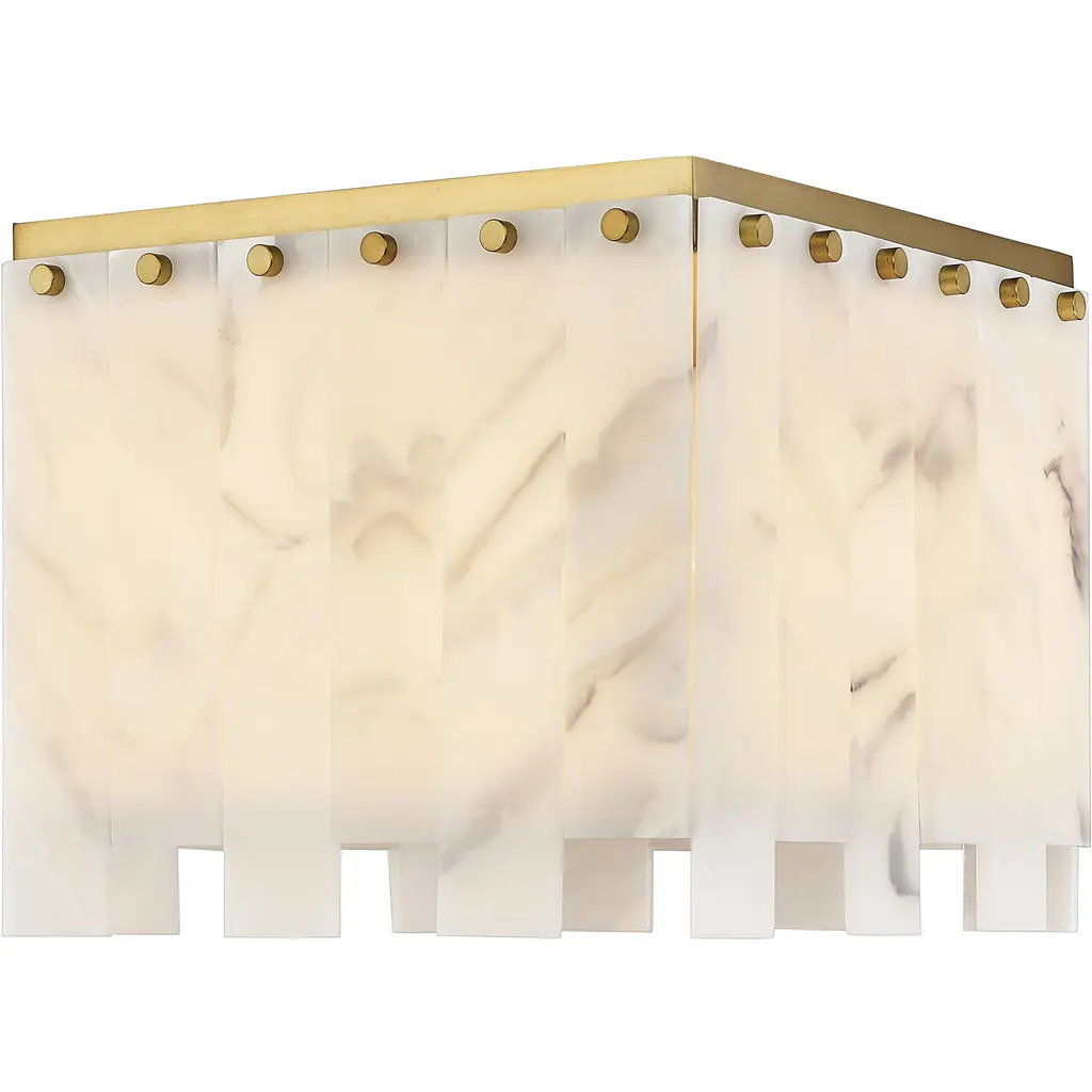 Artistry goes Art Deco in personality and adds an inspired gallery feel with a light fixture that becomes a focal point. This four-light flush mount ceiling light from the Viviana collection creates impact with alabaster-like strips alternating in length and arranged around a square polished nickel finish steel frame. Dressed up with whimsical rivot detailing, this flush mount light goes with the flow as it complements a gritty rendition of toned-down glam in a kitchen or entryway.