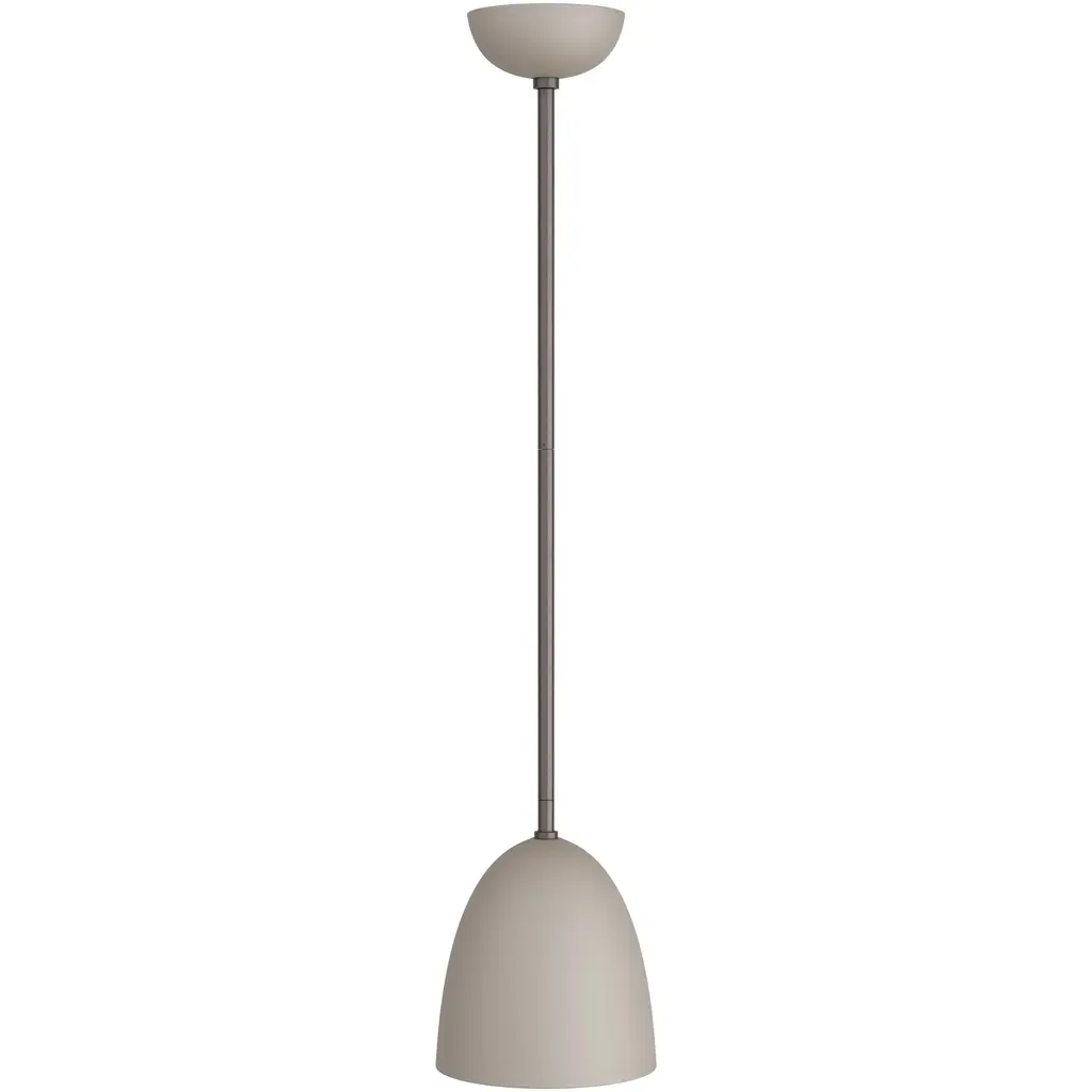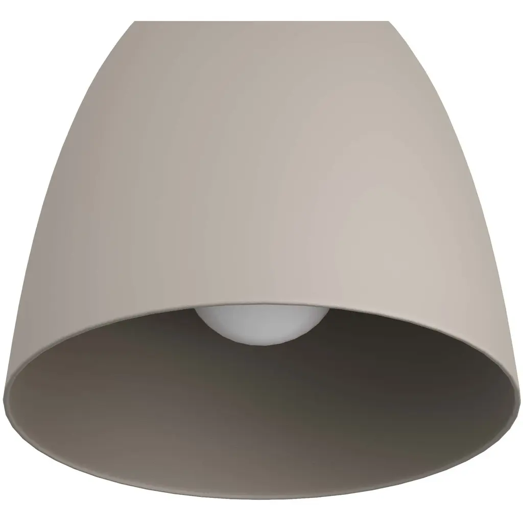 Created in a matte taupe steel shade, the wade flush mount can be easily incorporated into any stylistic environment. The shade is designed in a classic bowl shape, lined in white. A matching taupe canopy secures the light to the ceiling. The fixture is outfitted with a steel english bronze finished rod, offering usage as a pendant, as well. Damp-rated, although limited covered outdoor conditions may affect finish.