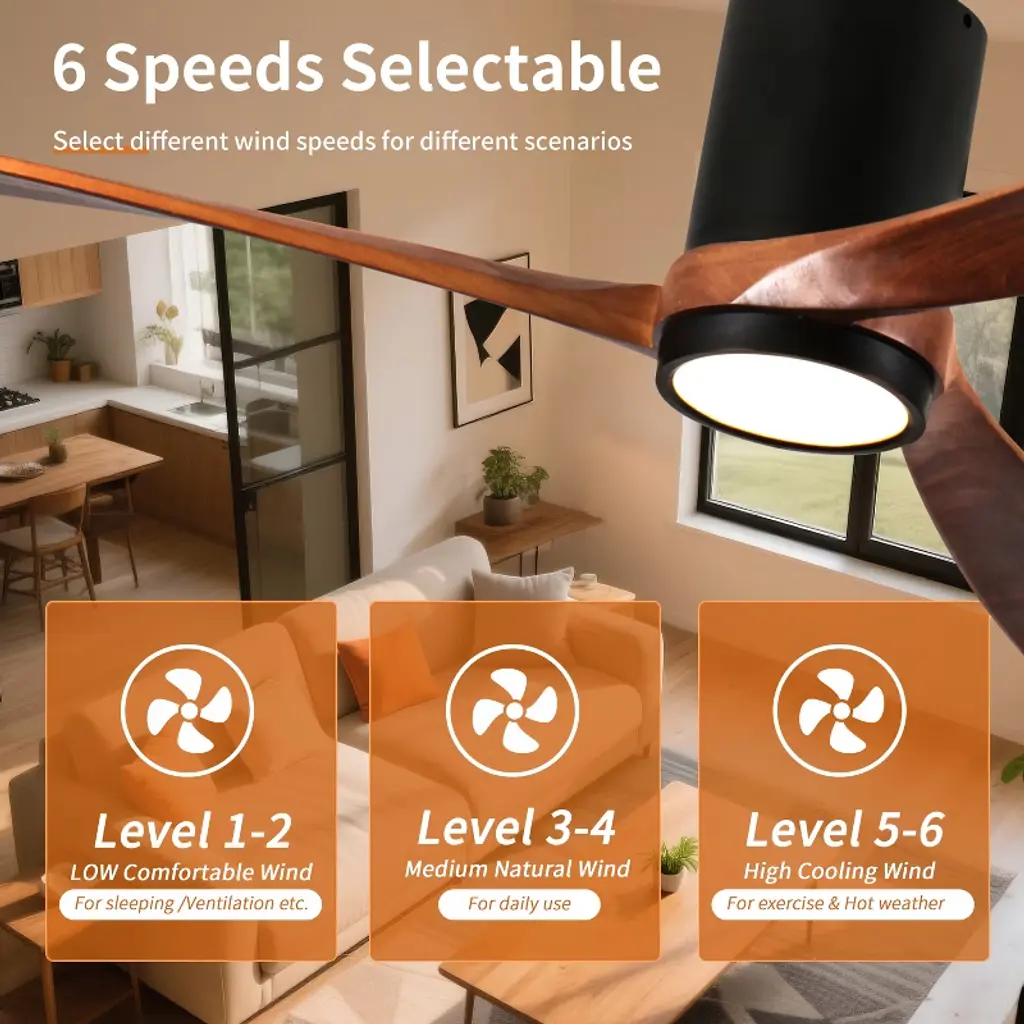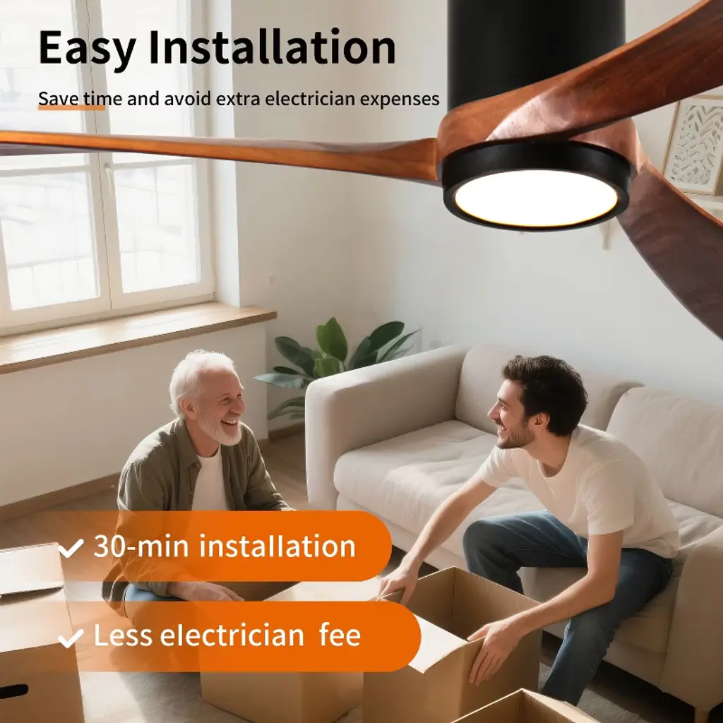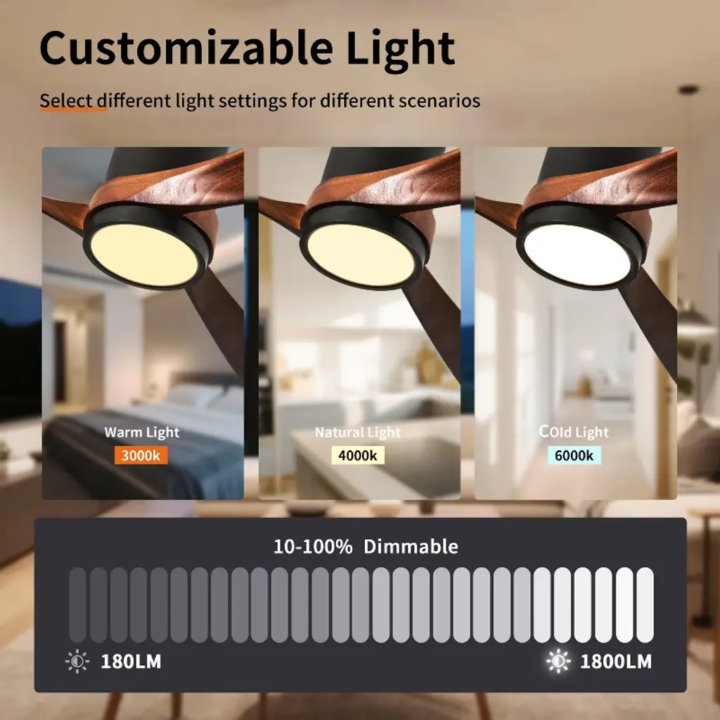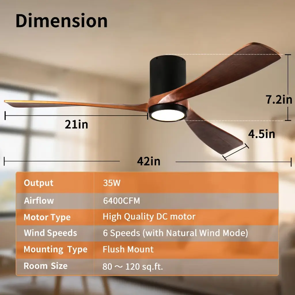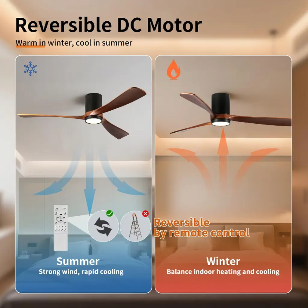 Transform your home comfort with our 3-blade flush mount ceiling fan. Control both the quiet 6-speed fan and dimmable LED light with the remote or smart app. Choose from three light colors to set the perfect mood. The energy-efficient DC motor provides powerful airflow for summer and a reversible function for winter, all in near silence. Crafted with solid wood blades and a low-profile design, it¡¯s an elegant and practical upgrade for any room. Backed by a 1-year warranty and secure packaging.