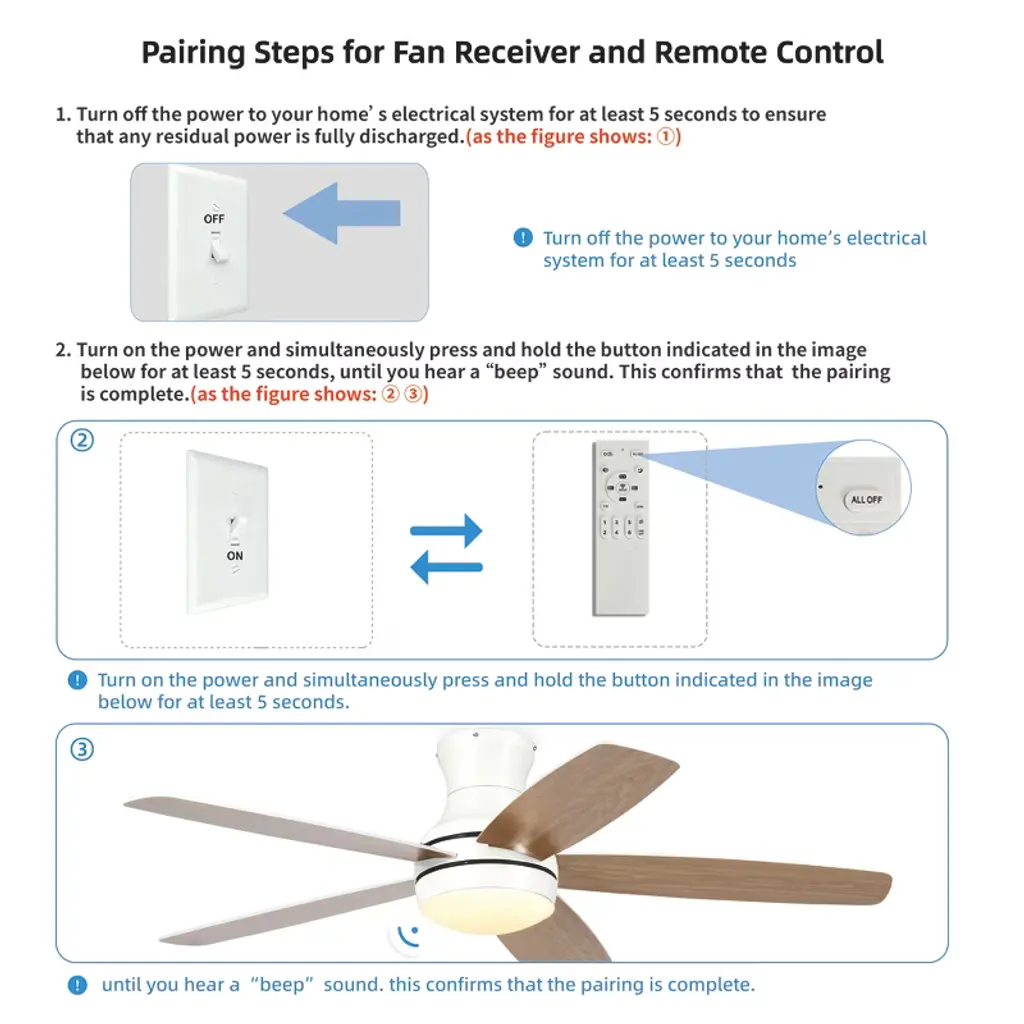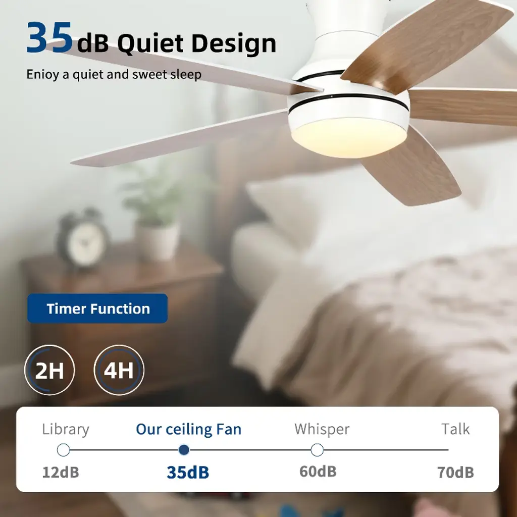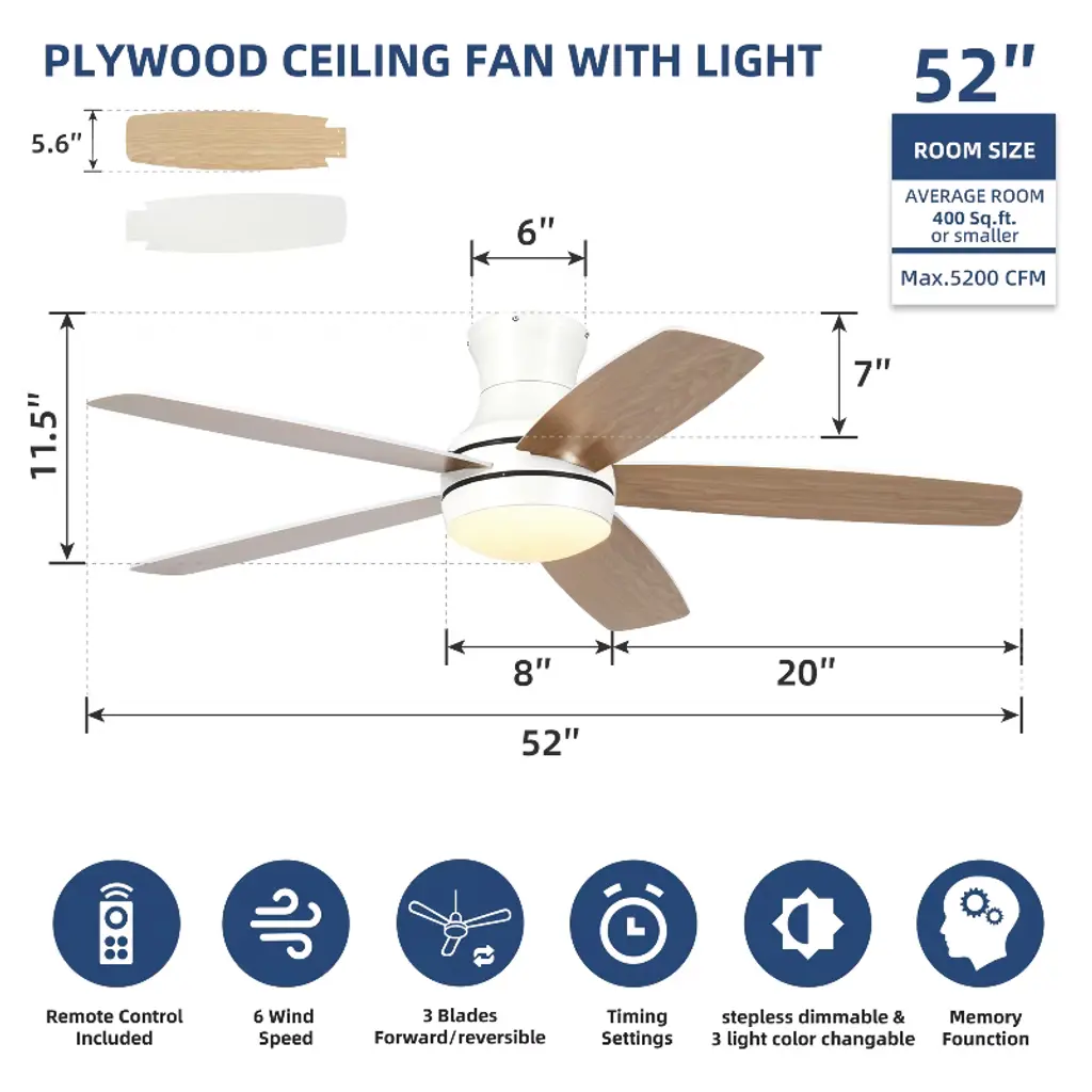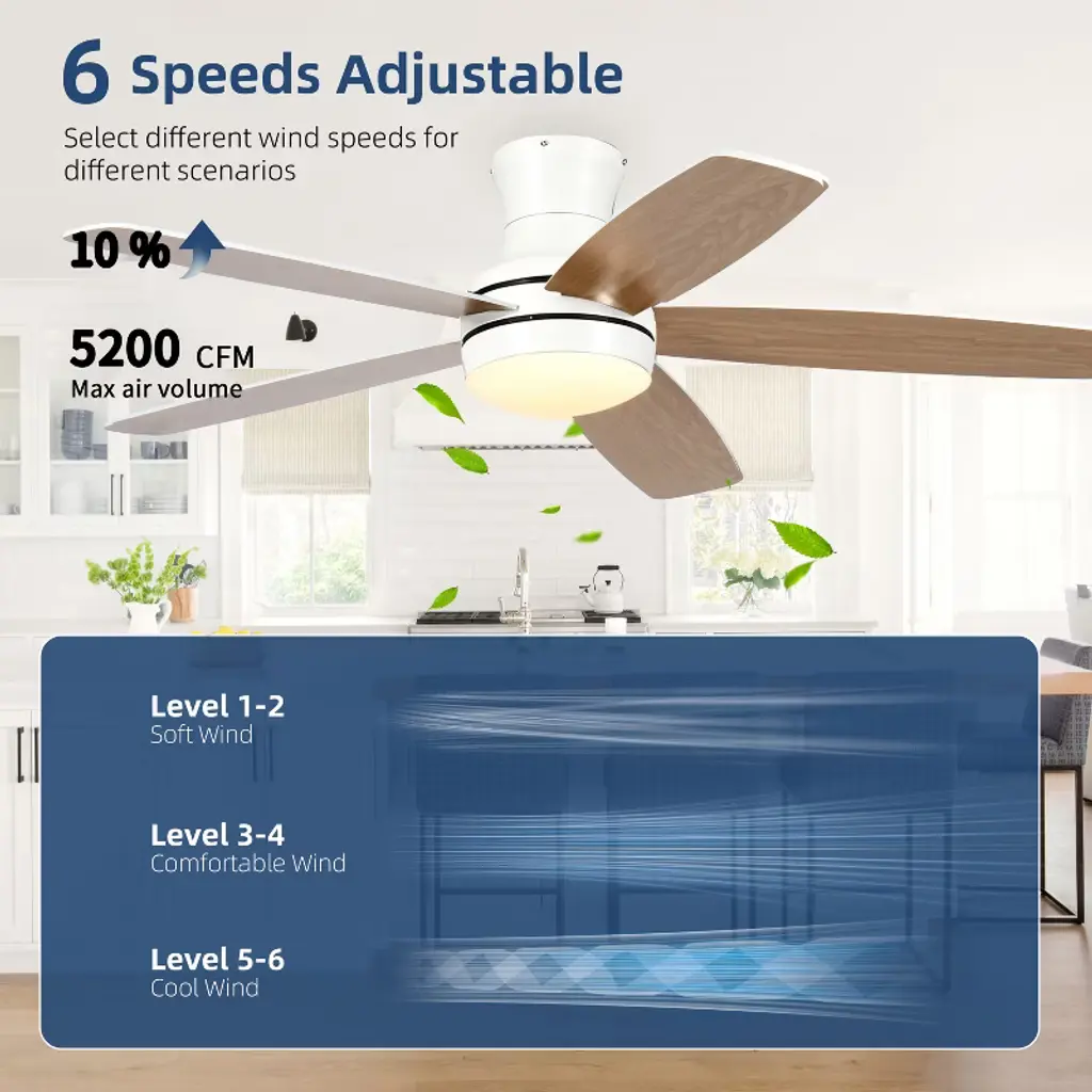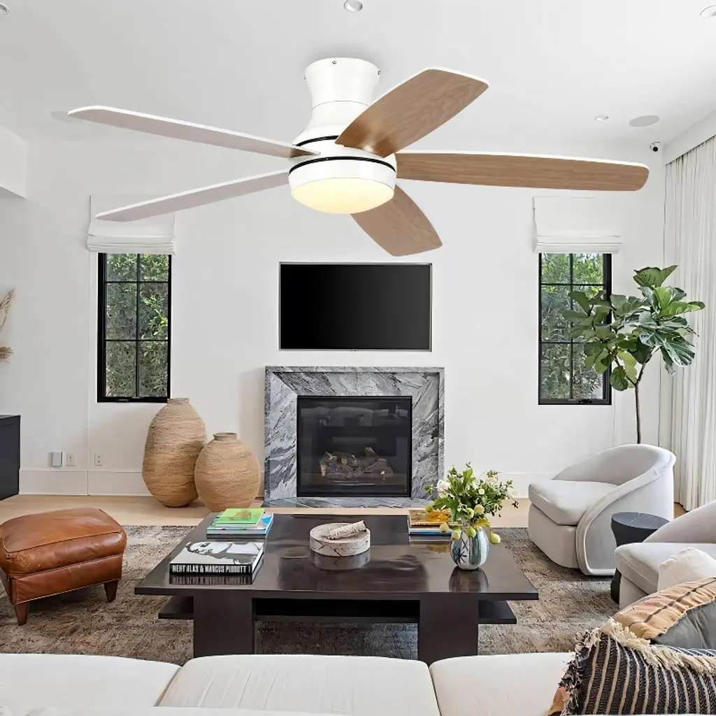 Wanze Of Ocean 52 In. 5-blade Indoor Flush Mount Ceiling Fan With App Remote Control And Light, 3-color Dimmable, Dc Motor, Two Blade Colors