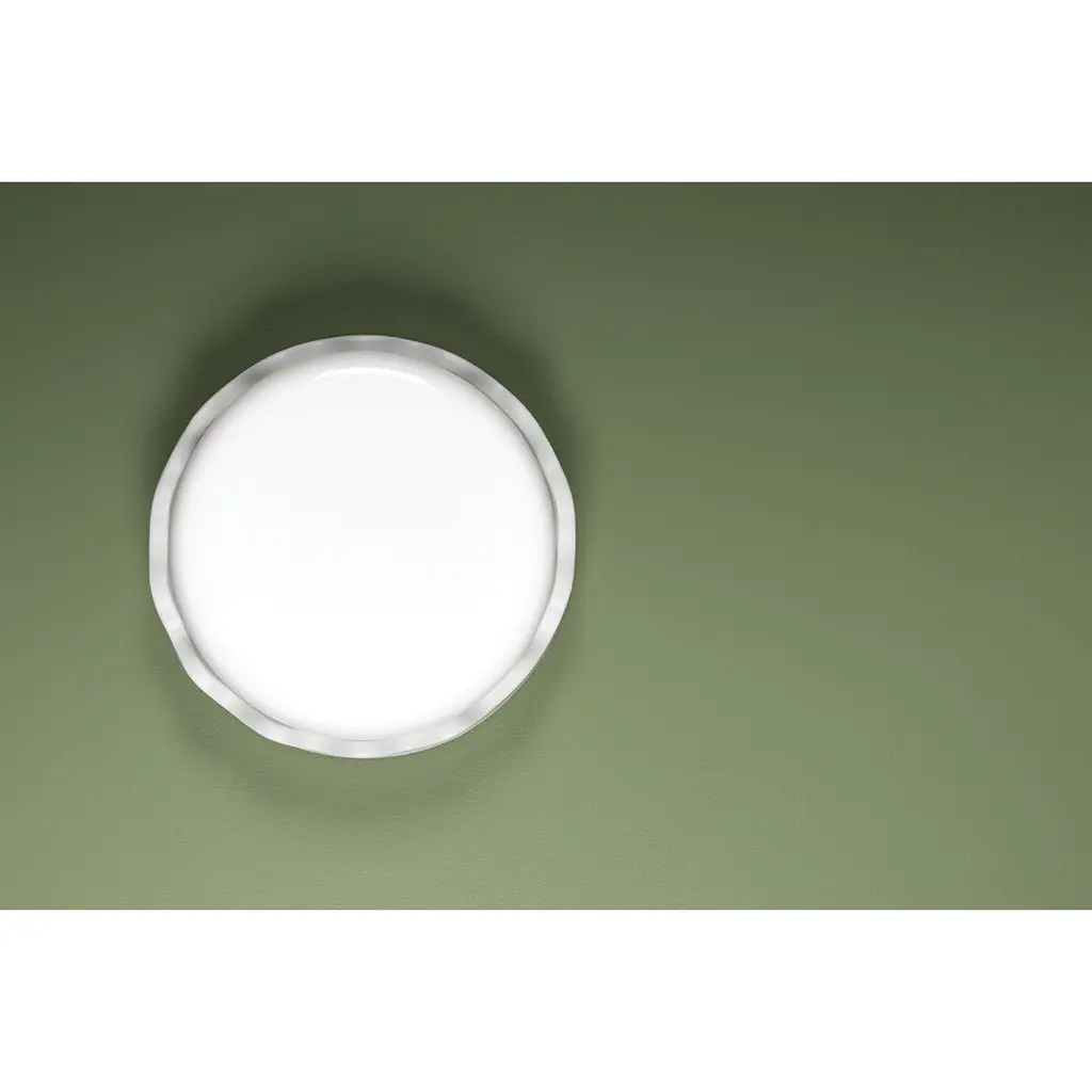 Wave keeps things clean and serene. A smooth, scalloped edging at the base forms a subtle squiggle that encircles the shade, creating a sense of movement. This monochromatic fixture plays with texture and finish, combining a ceramic matte base with an opal shiny glass shade. Wave brings a sense of calm while making a stylish splash.