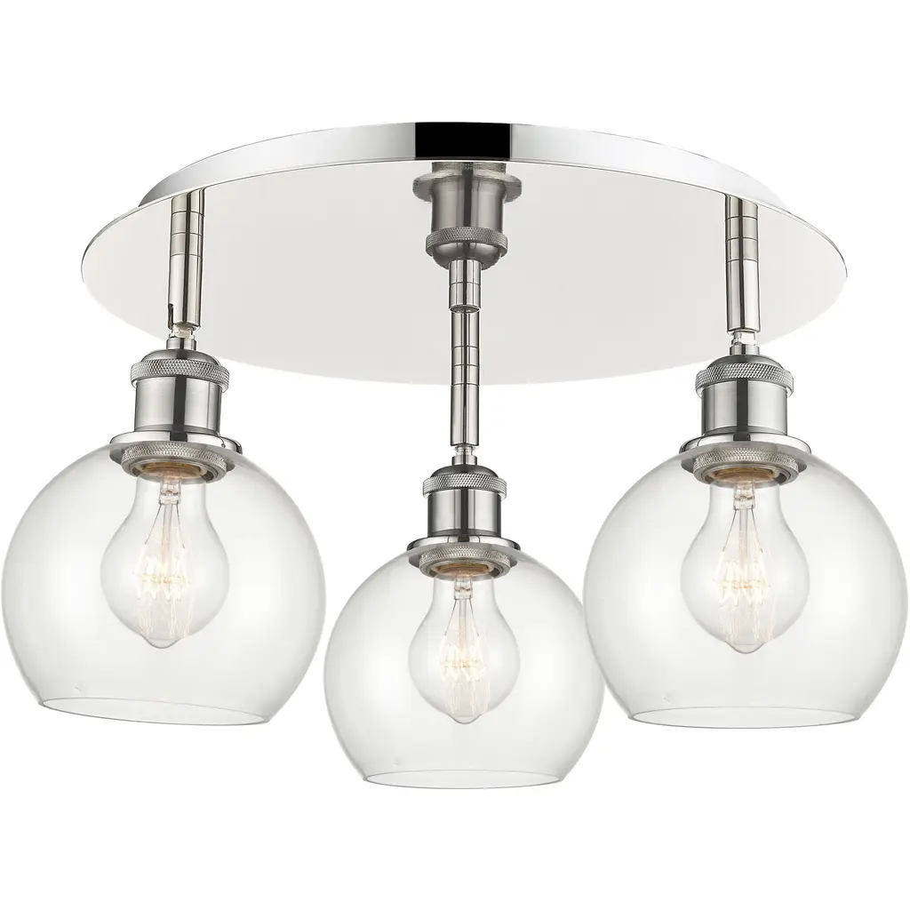 Waverly - 3 Light 18" Flush Mount - Polished Nickel Finish - Clear Glass Shade