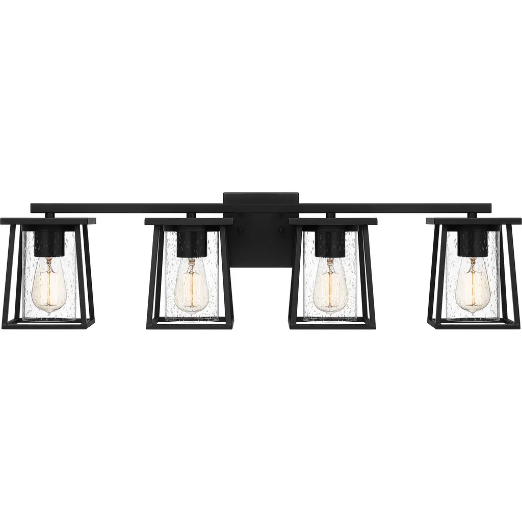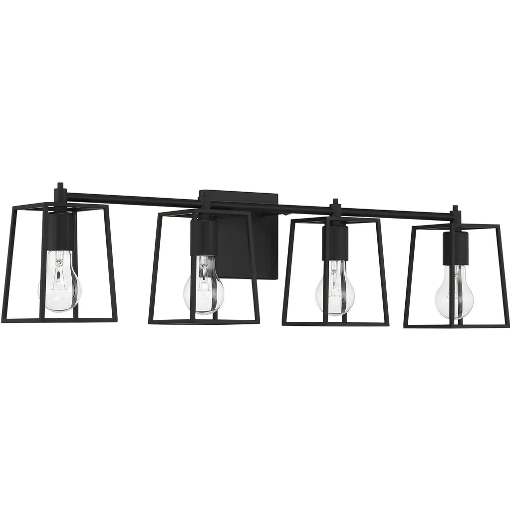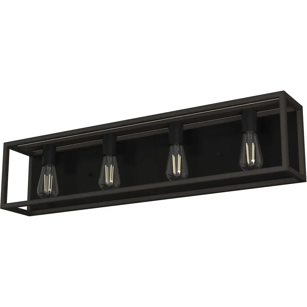 Bring industrial elegance into your home with the Golden Lighting Wesson 5-light Flush Mount. Featuring a robust open design, it creates a welcoming atmosphere in any room.With no shade, this fixture highlights its strong graphic quality and allows for expansive illumination. The bold, utilitarian aesthetic celebrates the charm of open spaces and is perfect for making a statement in low-ceiling areas.The Matte Black finish exemplifies understated elegance and complements various decorsfrom minimalist to contemporary.Ideal for low ceilings in hallways, closets, laundry areas, and bathrooms, this fixture is Damp Location Rated, making it suitable for covered spaces with occasional moisture. It requires 5 E26 Medium base bulbs (not included) with a maximum wattage of 100 per bulb, and the overall dimensions are 41"W x 9.63"H x 8.25"D.Elevate your space with the striking design and quality craftsmanship of the Golden Lighting Wesson. Perfect for those who appreciate a mix of function and vintage-inspired charm.