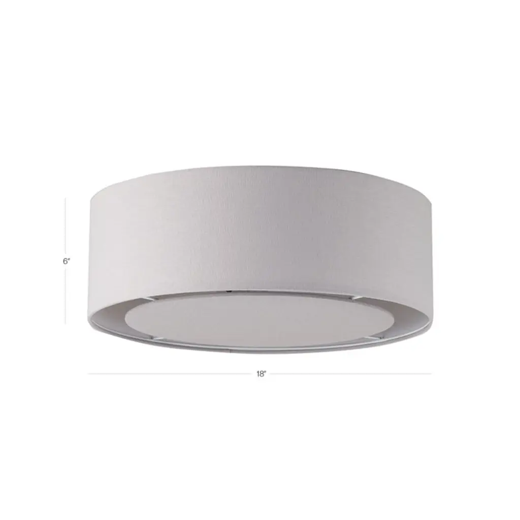 Designed to provide you with plenty of light while taking up little space, this modern drum shade flush mount light will fit right in just about anywhere. While it's great for brightening up the kids room, playroom or nursery, it's also a brilliant way to add some light to your closets. With a clean, simple design, it has a neutral look, giving it the versatility to match all kinds of decor. Made from durable iron with a drum-shaped linen shade, it accommodates two lightbulbs for a bright glow.