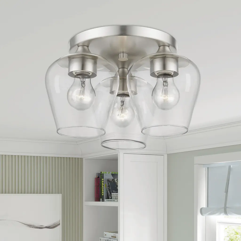 Willow 3 Light 13 Inch Brushed Nickel Flush Mount Ceiling Light