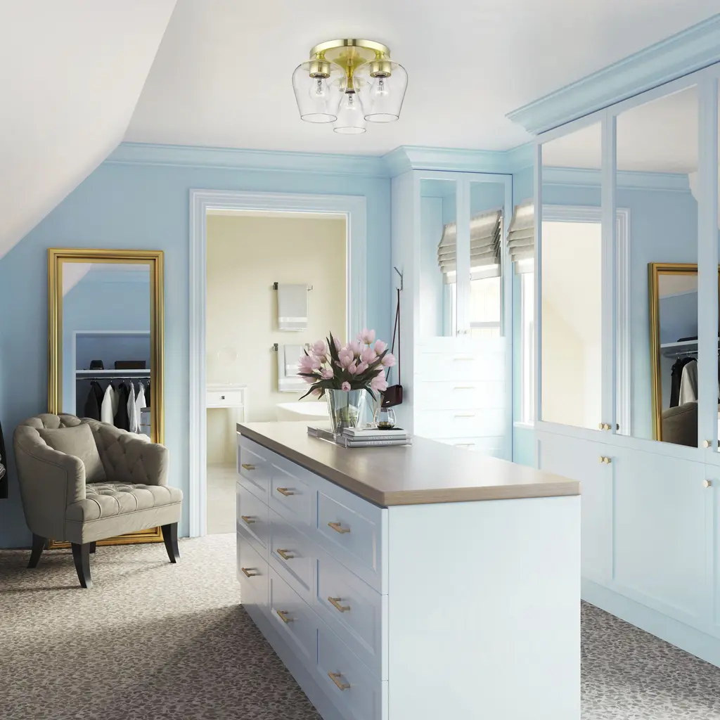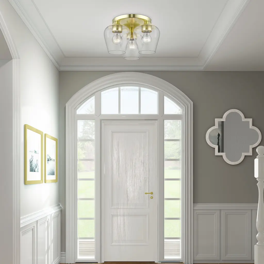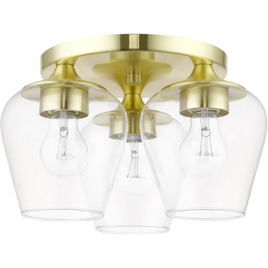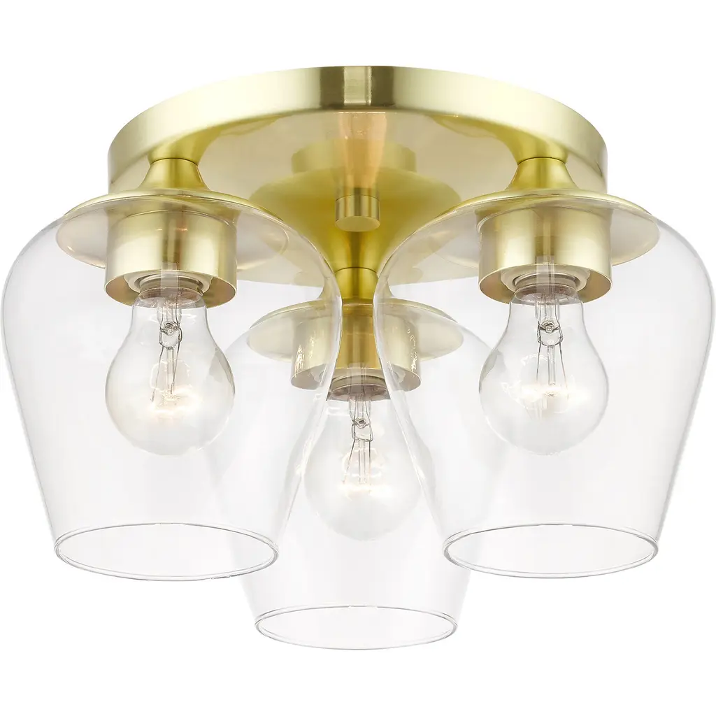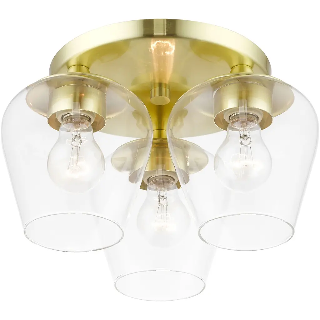 Willow 3 Light 13 Inch Satin Brass Flush Mount Ceiling Light