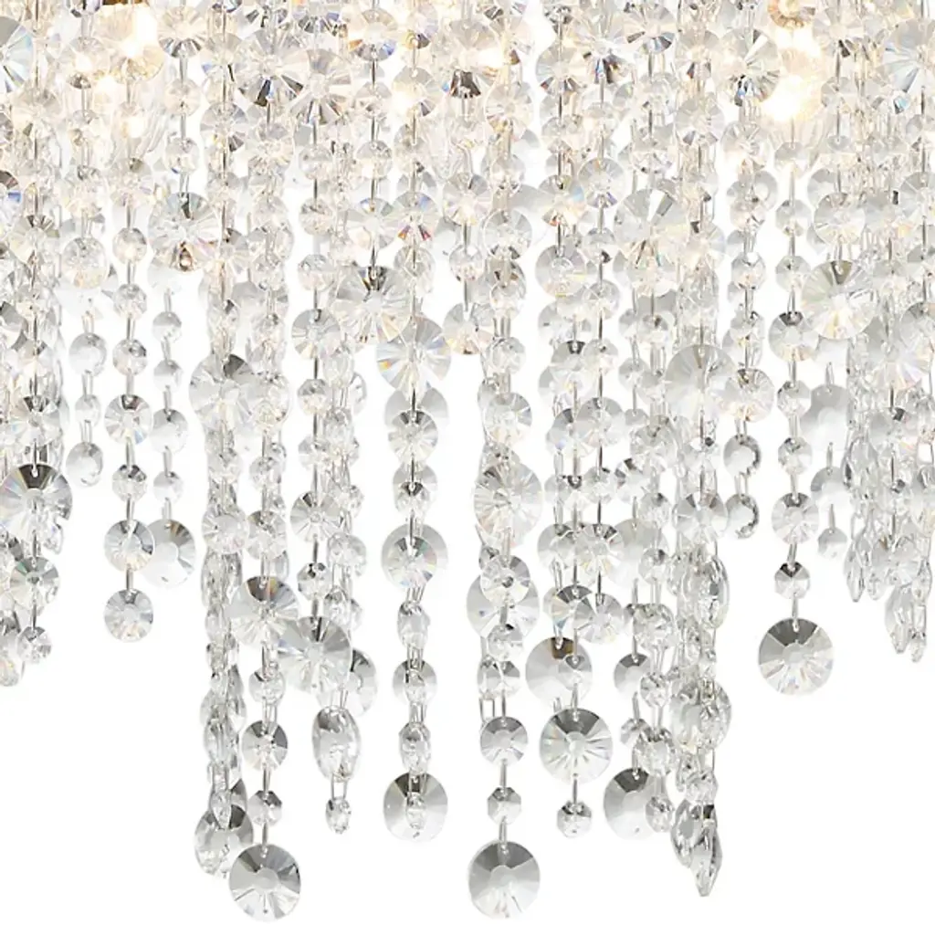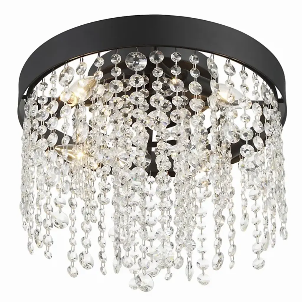 The Winham Flushmount by Crystorama brings a layer of glamor to your home. With a simple round iron frame that has a luxurious finish, an arrangement of hand-cut clear crystals descends in a tiered arrangement below. Reflecting and refracting the even layer of light from above them, this sparkling composition adds an engaging touch to its environment. With a tailored and sophisticated air, this flushmount adds a chandelier-inspired touch to ceilings.