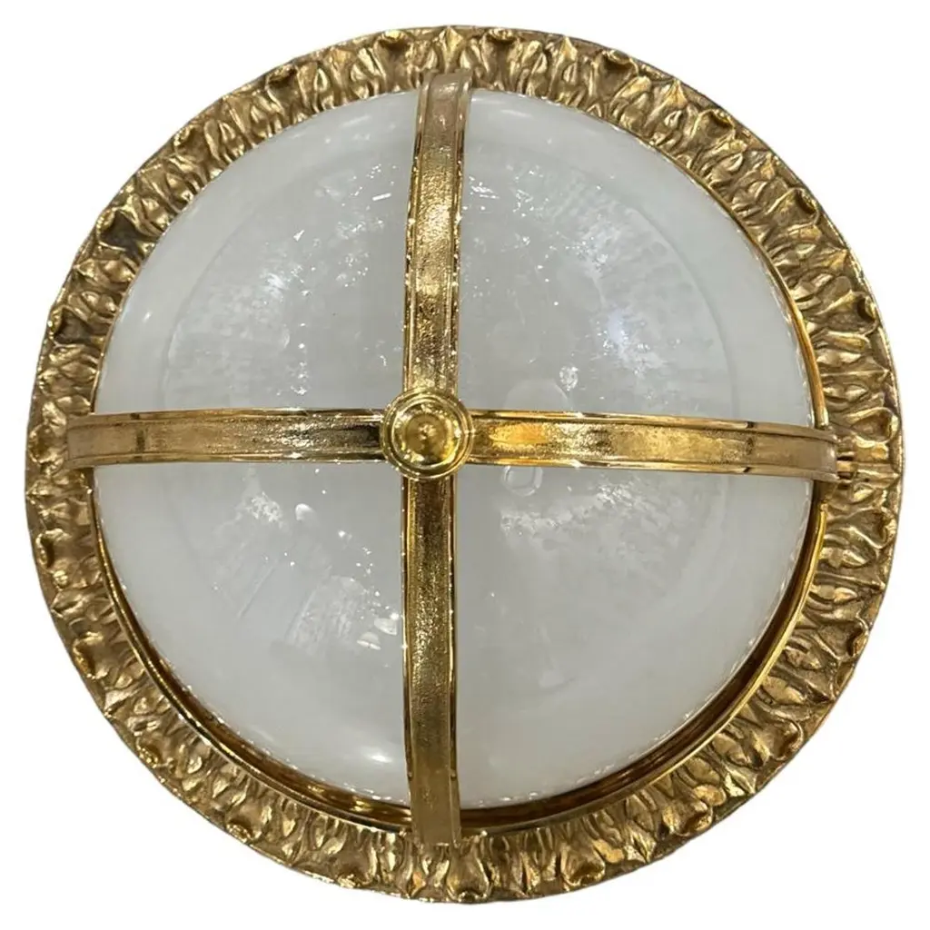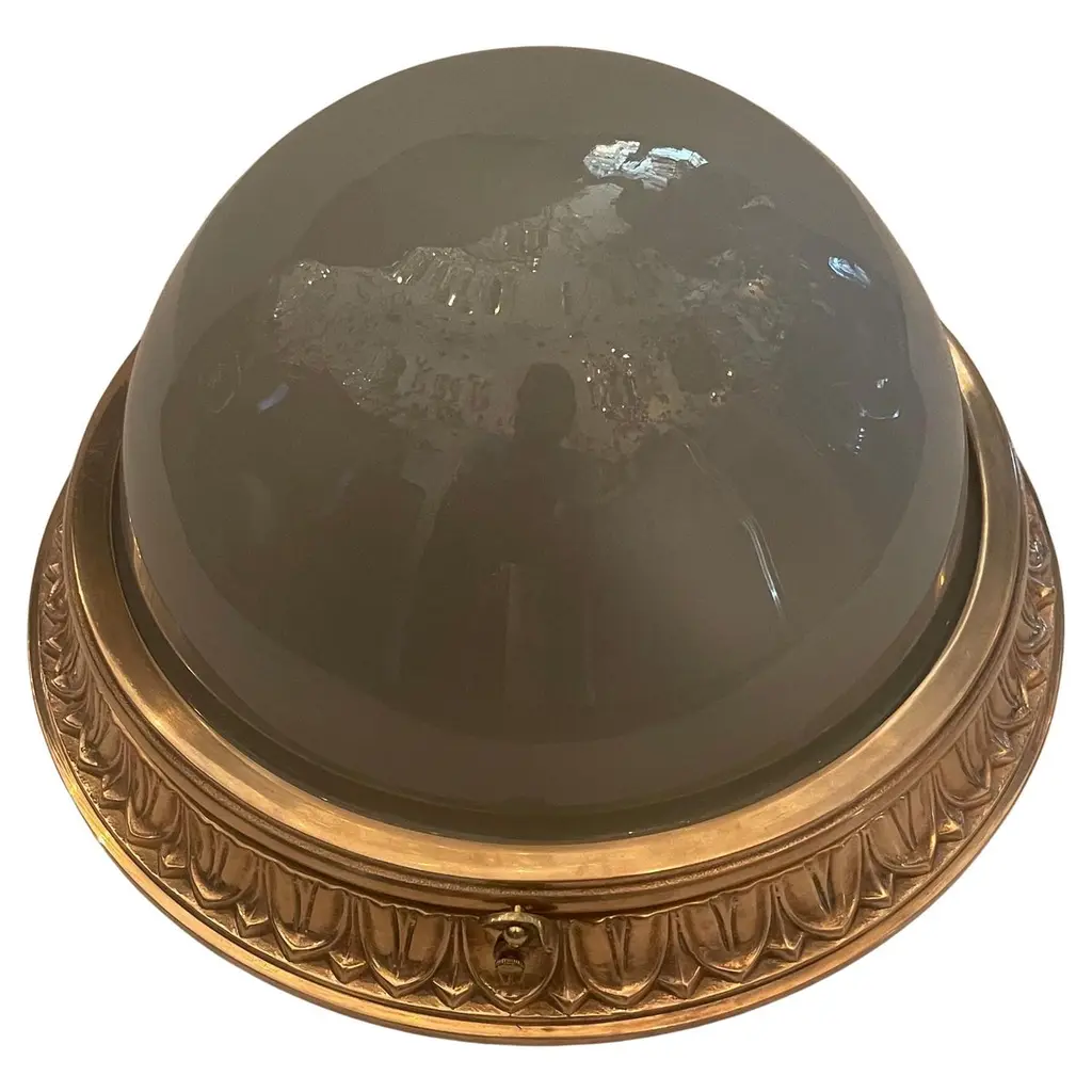 Wonderful Regency Neoclassical Bronze Frosted Glass Ceiling Flush Mount Fixture