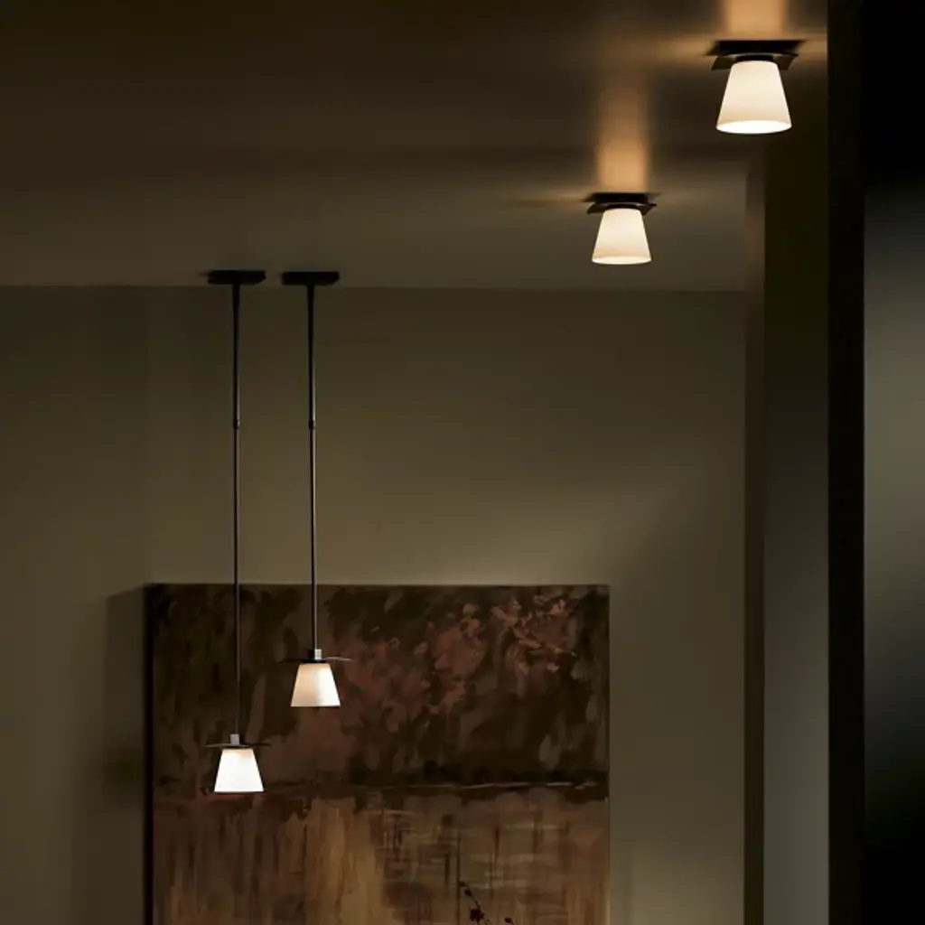 Both smooth and angular in form, with a blend of contemporary and Craftsman design elements. The Hubbardton Forge Wren Flushmount features a hand-forged frame available in several distinctive finishes and a hand-blown glass offer in several styles. Just over 5" in diameter and 5" in height, the Wren Flushmount is available in either incandescent or energy efficient fluorescent. Ideal for bathrooms, kitchens, bedrooms.