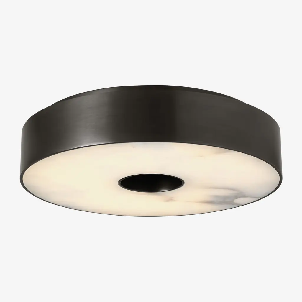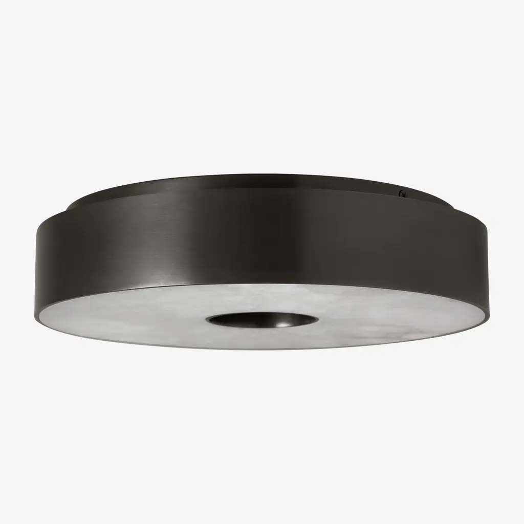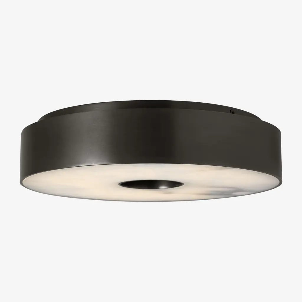 The Wyllis flush mount is structured and refined, this collection pairs solid brass hardware with natural alabaster diffusers. Both functional and decorative with a design that reflects modern art when off and functional lighting when turned on. Offered in modern finishes.