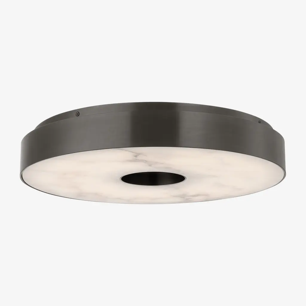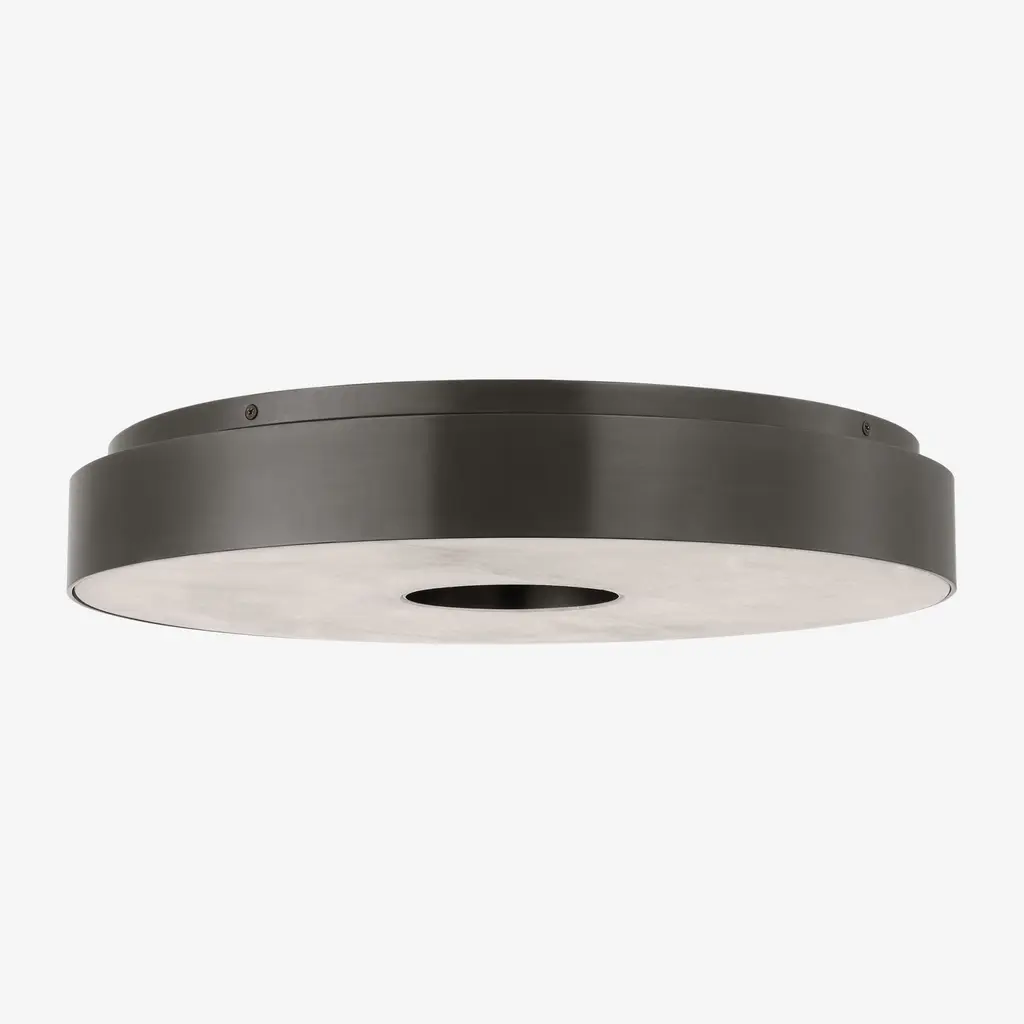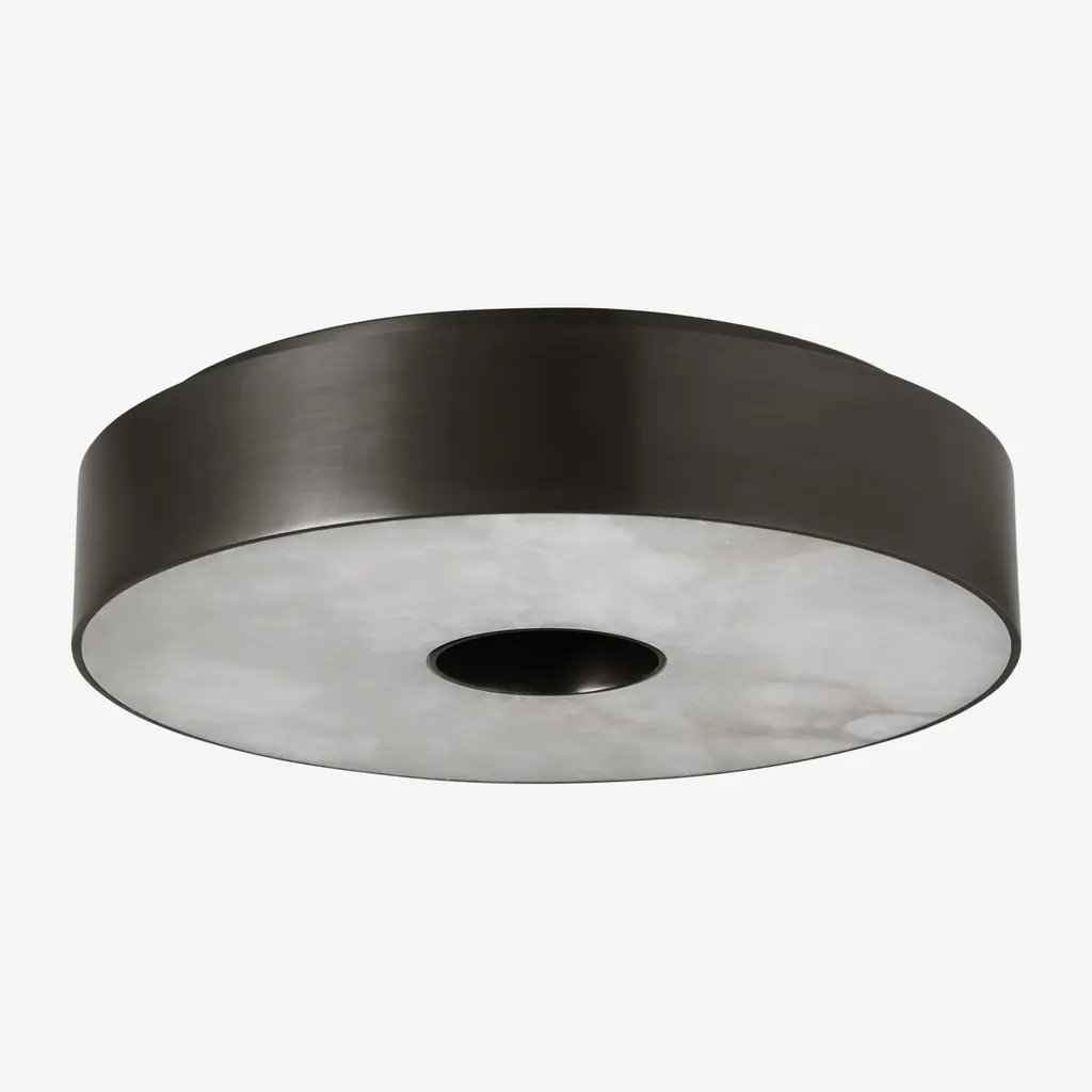 The Wyllis flush mount by Kelly Wearstler is structured and refined, this collection pairs solid brass hardware with natural alabaster diffusers. Both functional and decorative with a design that reflects modern art when off and functional lighting when turned on. Offered in modern finishes.
