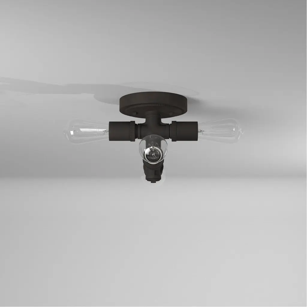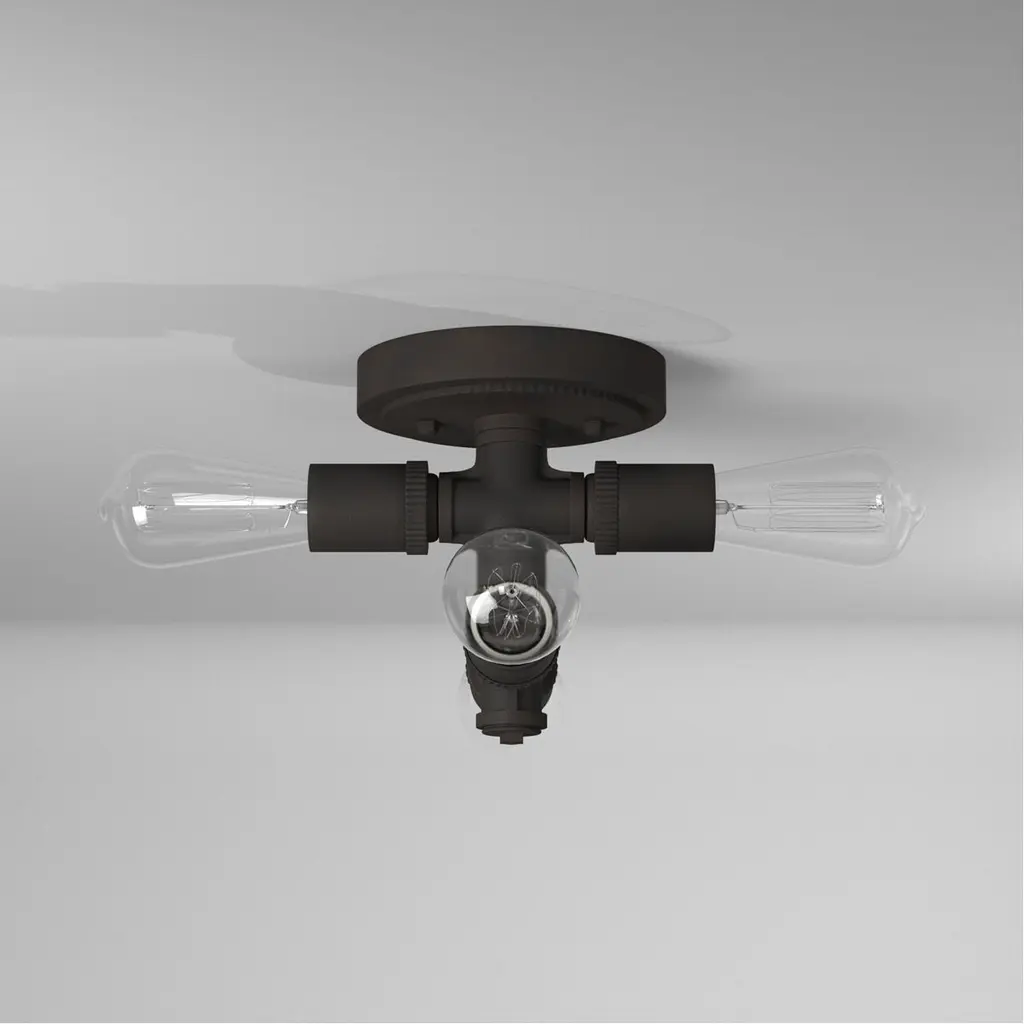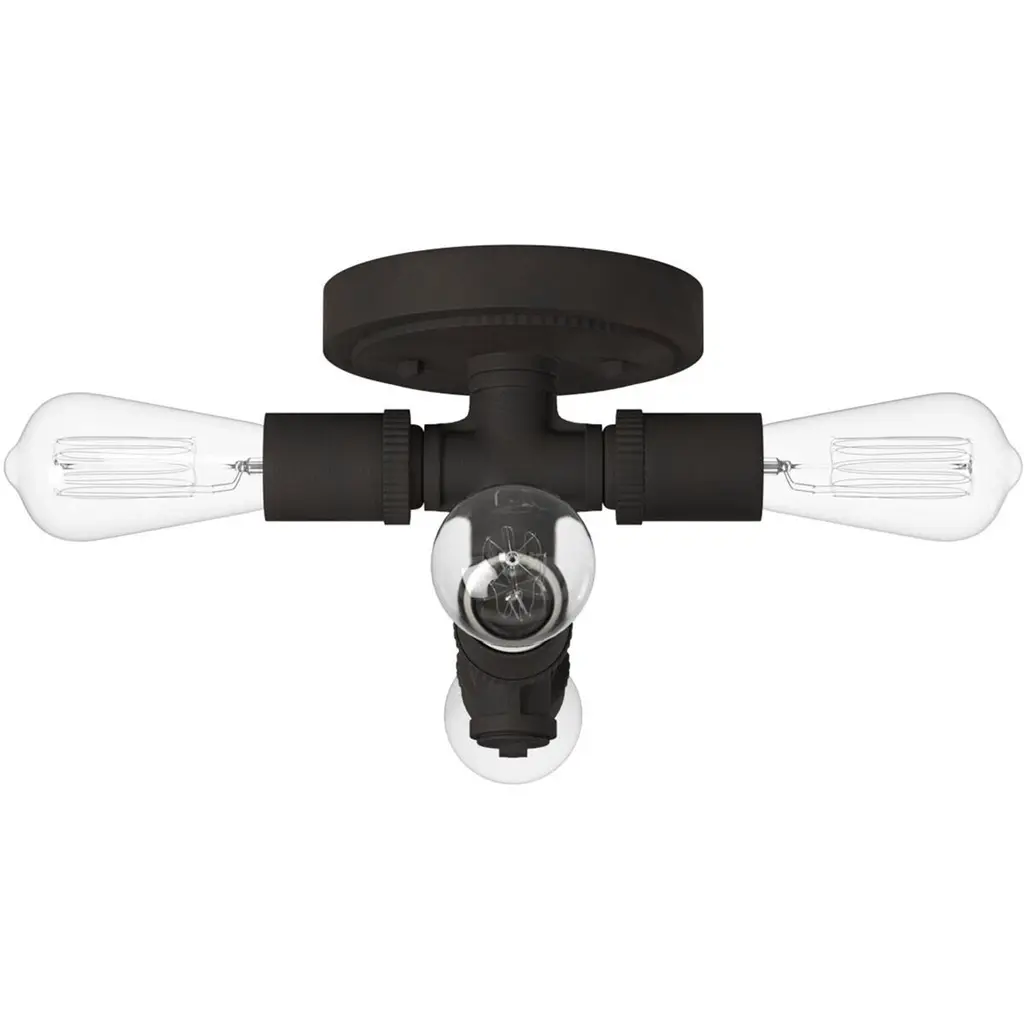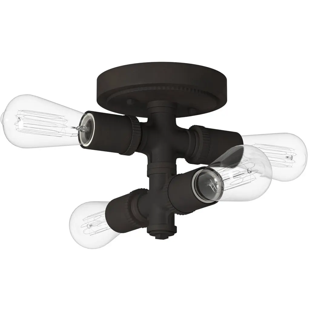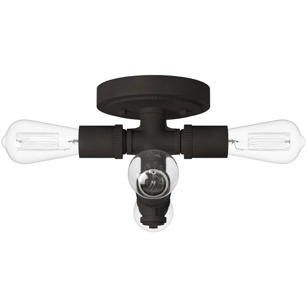 Bring industrial charm to your décor by suspending the Wymer Flush Mount Light by Eglo from your ceiling. The matte bronze finish and exposed bulbs creates a handsome focal point. This unique fixture complements many styles of décor from rustic, industrial to contemporary
