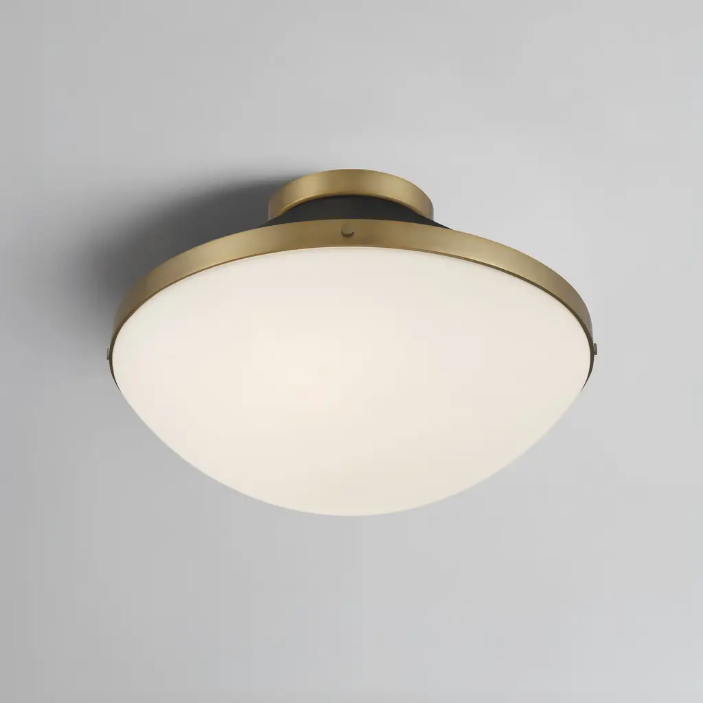 The Xander collection features a playful, mid-century-inspired design with clean lines and fun pops of color. It has white opal glass and gold accents, creating a two-toned finish that adds a touch of whimsy. This versatile fixture can be used in various settings, making it a stylish and functional addition to any room.
