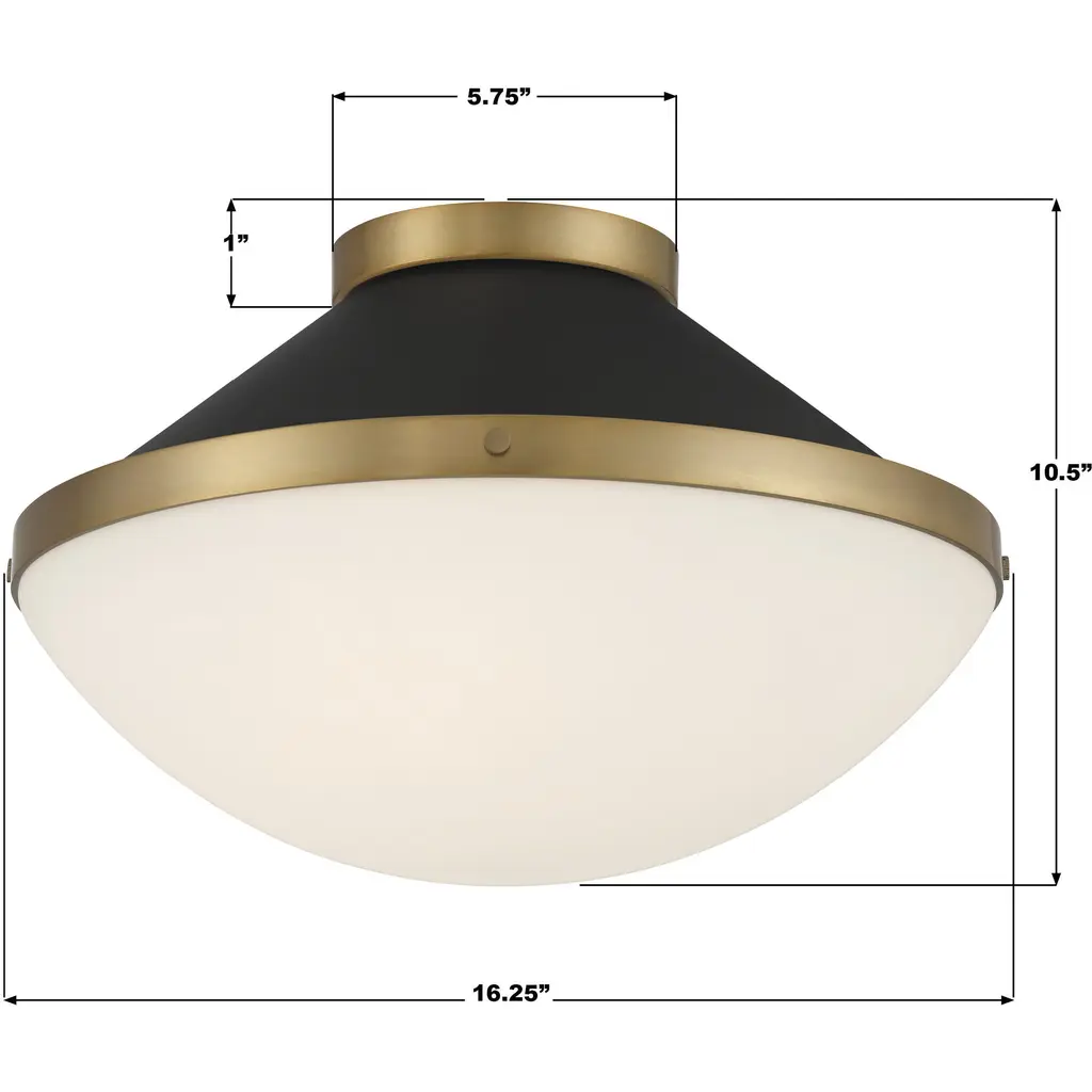 Xander 2 Light 16.25 Inch Vibrant Gold And Matte Black Flush Mount Ceiling Light