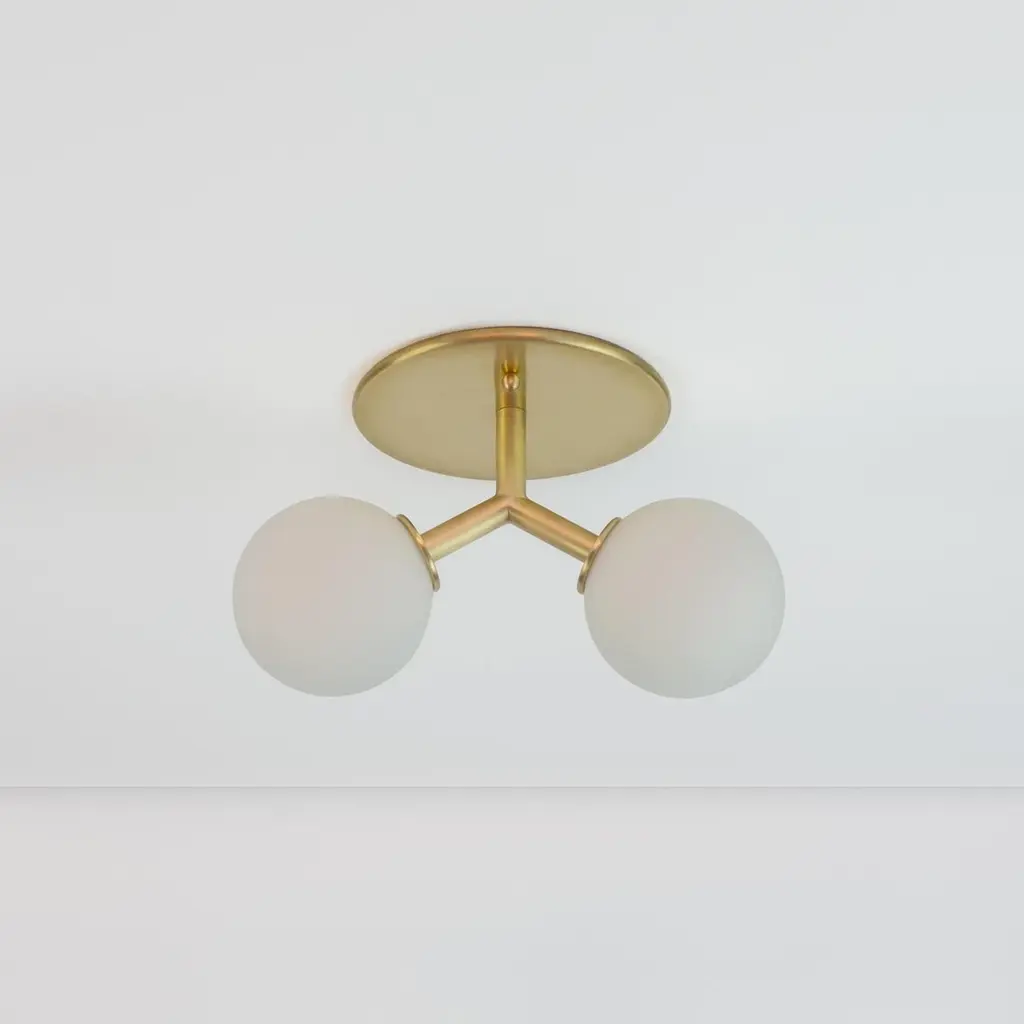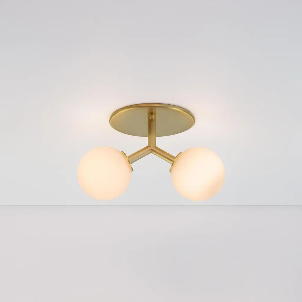 Y Flush Mount By Research.lighting, Brass, 3In Glass Globes, Made To Order