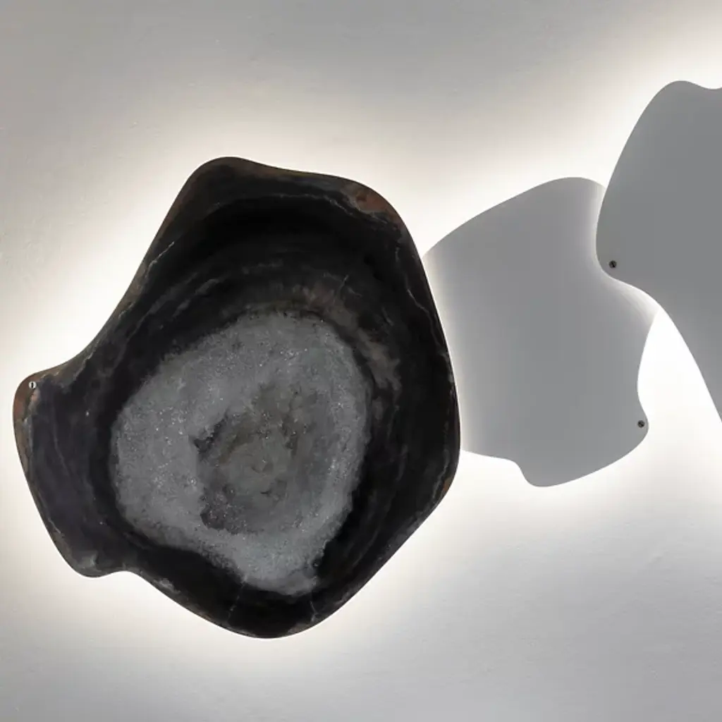The Ya-Ya LED Wall / Flushmount by Hind Rabii features a stylish, irregular shape that serves as a striking focal point in any room. The lights are hidden behind delicate mother-of-pearl corollas, which softly reflect light onto the wall, creating a warm, glowing outline that enhances the fixture's beauty. Handcrafted by skilled artisans, each piece is meticulously constructed and passes through multiple inspection stages to ensure the highest quality. This unique design adds a touch of elegance and artistry to any space.