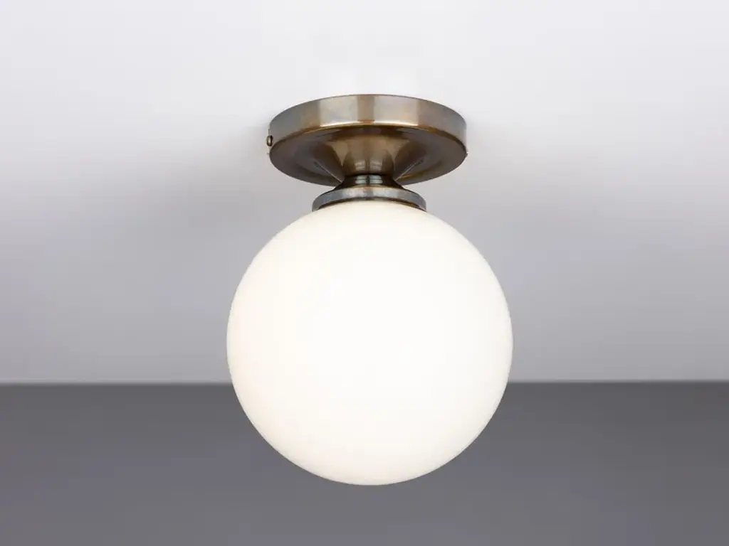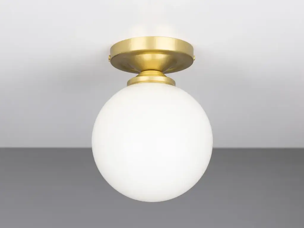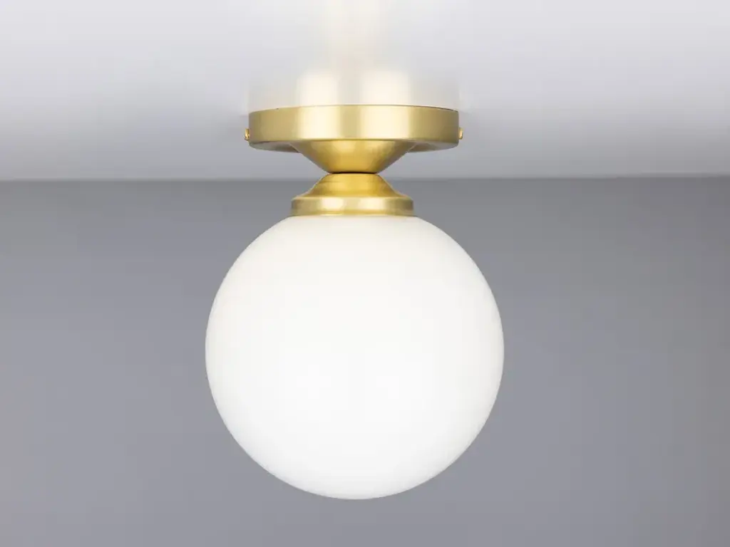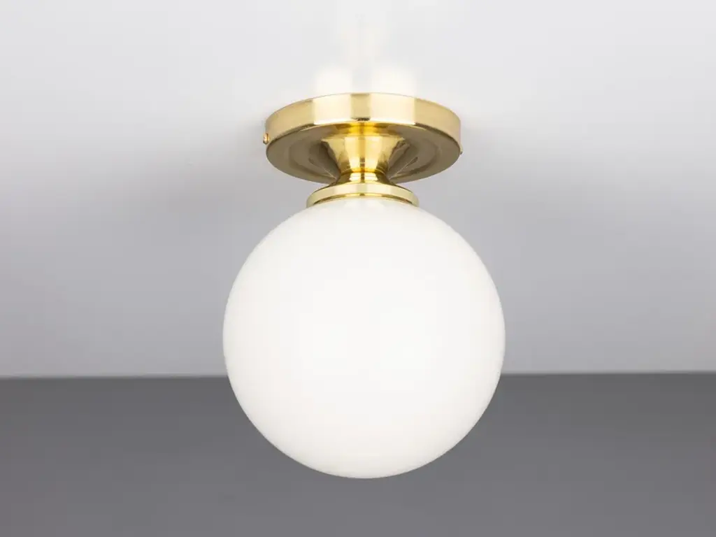 Yaounde flush globe ceiling light, traditional.Material Brass | GlassMax Wattage 6.5w LEDVoltage 220/240vLampholder G9IP Rating IP20Ceiling Attachment MLROSE05Glass Code GL044F