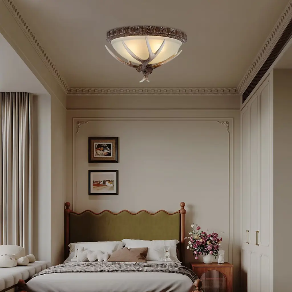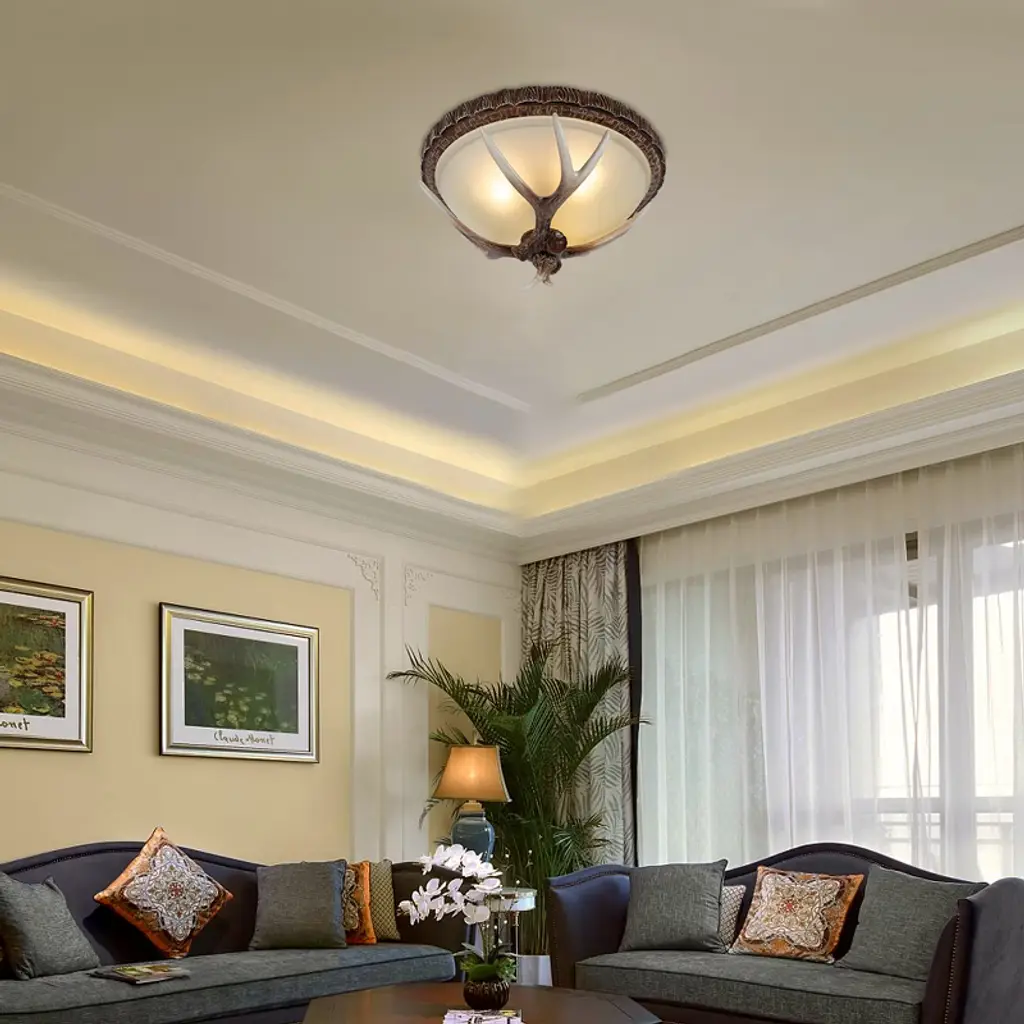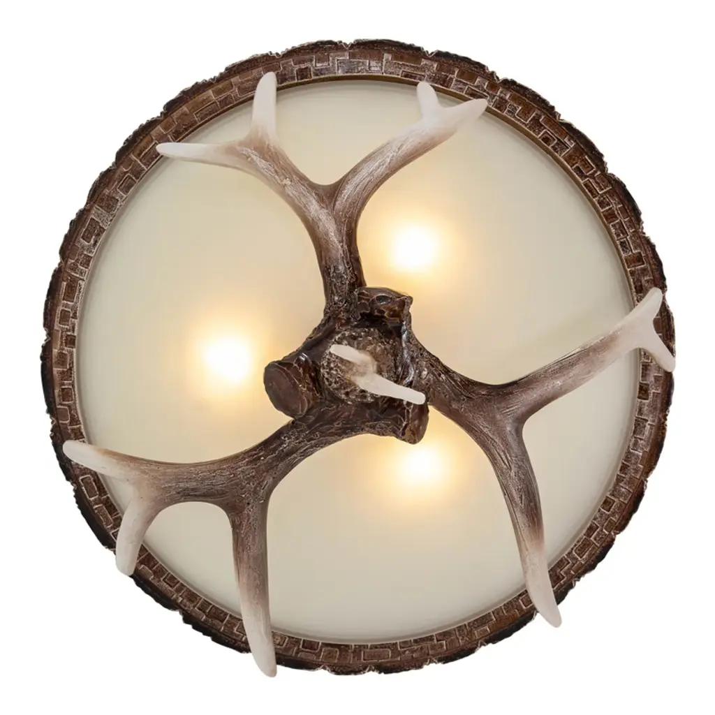 Yiyibyus 3-light Antique Resin Antler Round Flush Mount Ceiling Light
