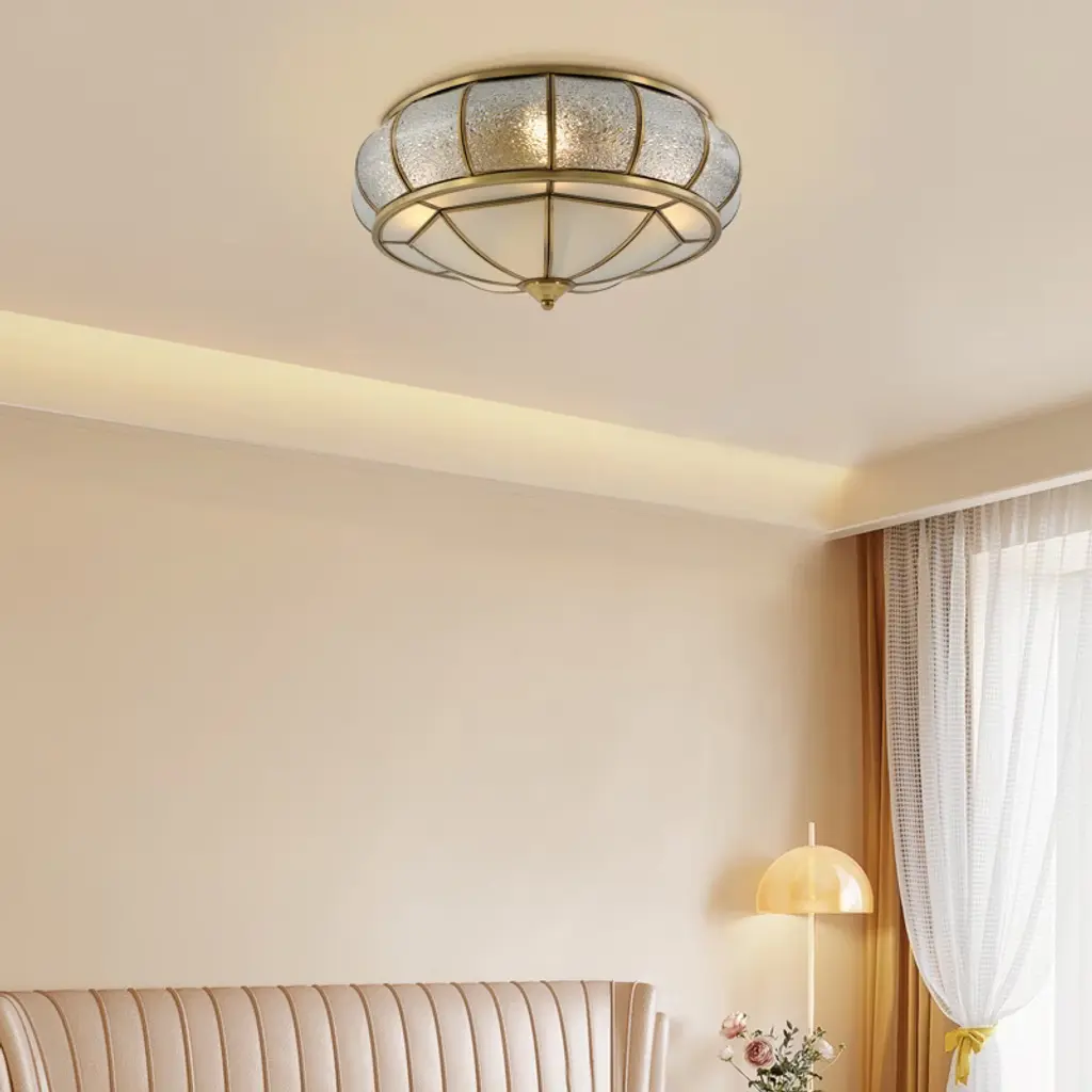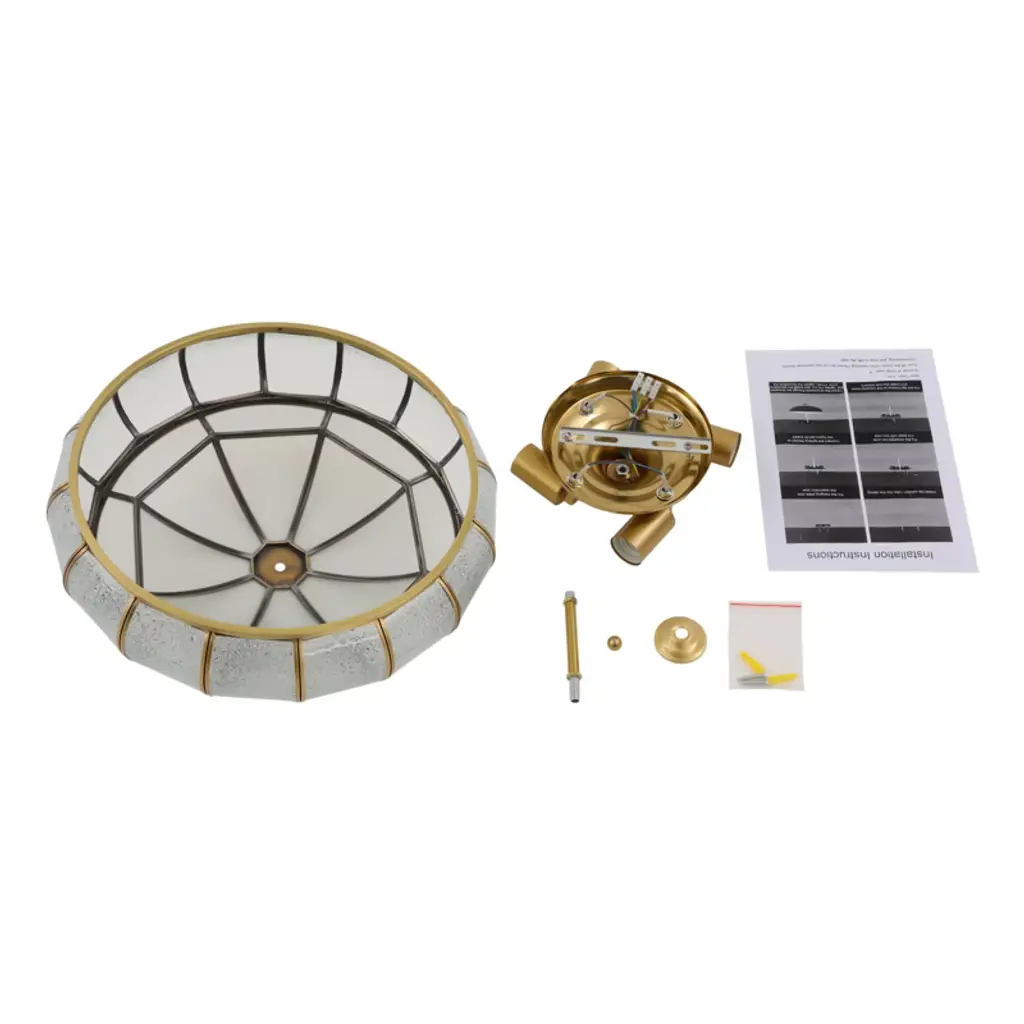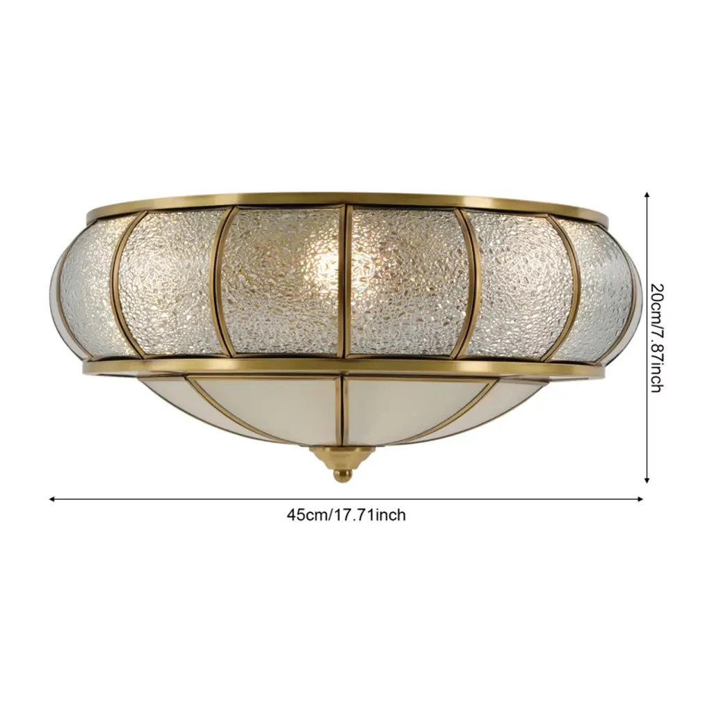 Elevate your home with this elegant ceiling light, masterfully crafted from premium copper and tempered glass to create a charming, romantic atmosphere. Its durable, corrosion-resistant construction ensures long-lasting beauty, while the modern, round design with a clear glass shade adds a touch of sophisticated style. Designed for versatility, it is easy to install and clean, and its simple structure allows for dimmable capabilities (with compatible bulbs and dimmer, not included), making it a perfect and practical gift for any home. Specifications Material: Copper, Tempered Glass Process: Electroplating Color: Bronze, Clear Style: Modern Shape: Round Efficiency: E Mount Type: Ceiling Mount Assembly Required: Yes Light Source Type: 4* E26 Bulbs(Not Included) Voltage: 110V Max. Single Bulb Power: 25W Control Method: Wall Switch (Not Included) Applicable Area: 15m²/161.46ft² Product Size(D*H): 45*20cm/17.71*7.87in Gross Weight: 4.92kg/10.84lbs Net Weight: 4.67kg/ 10.29lbs