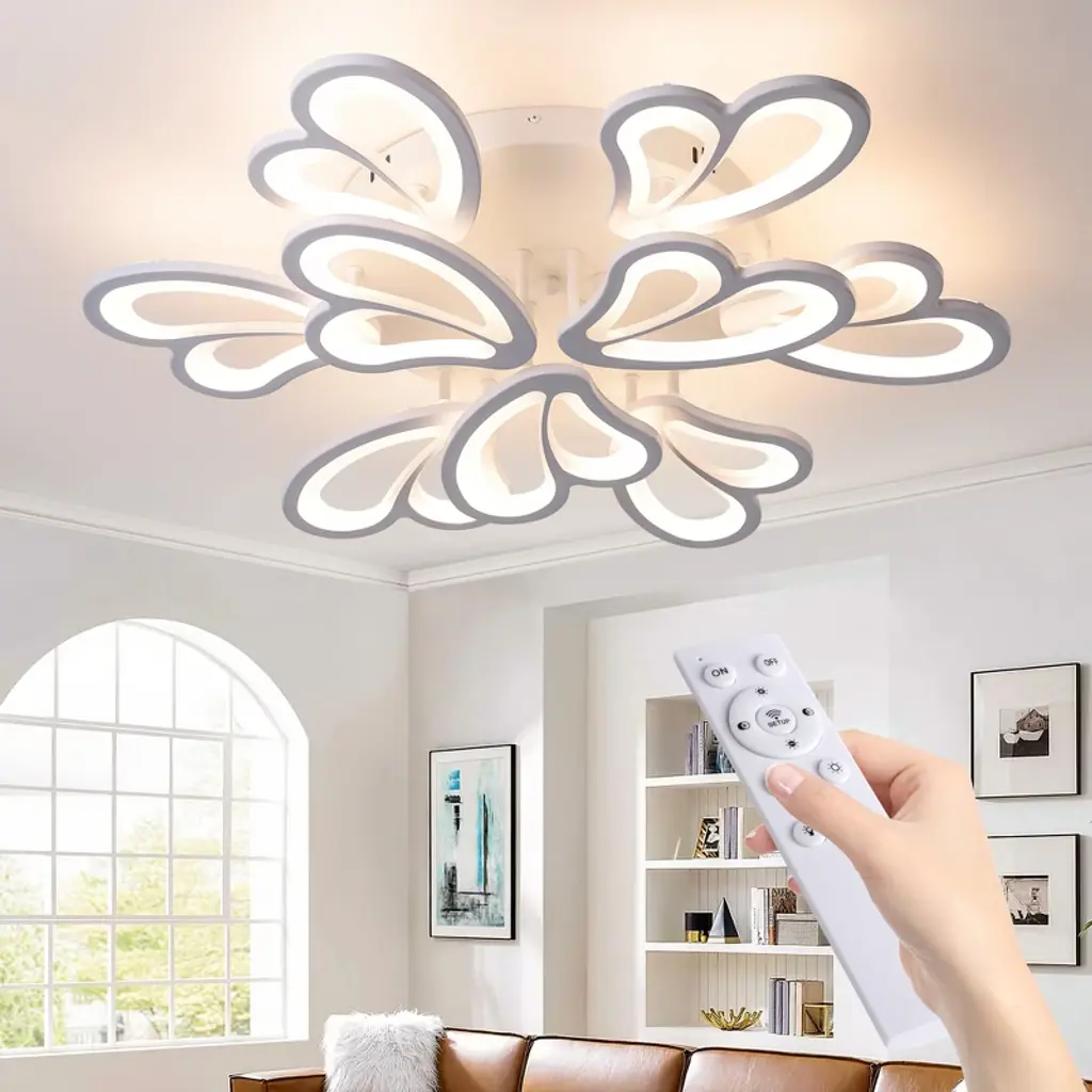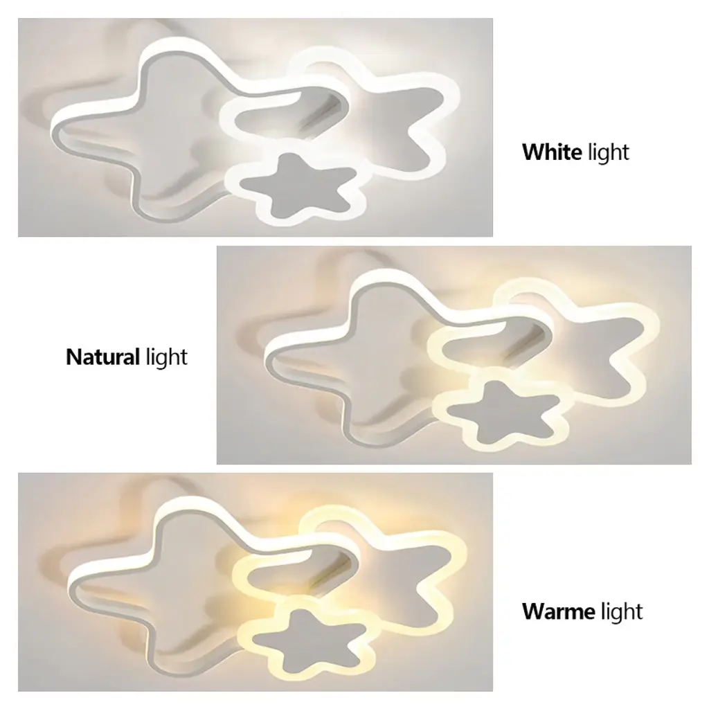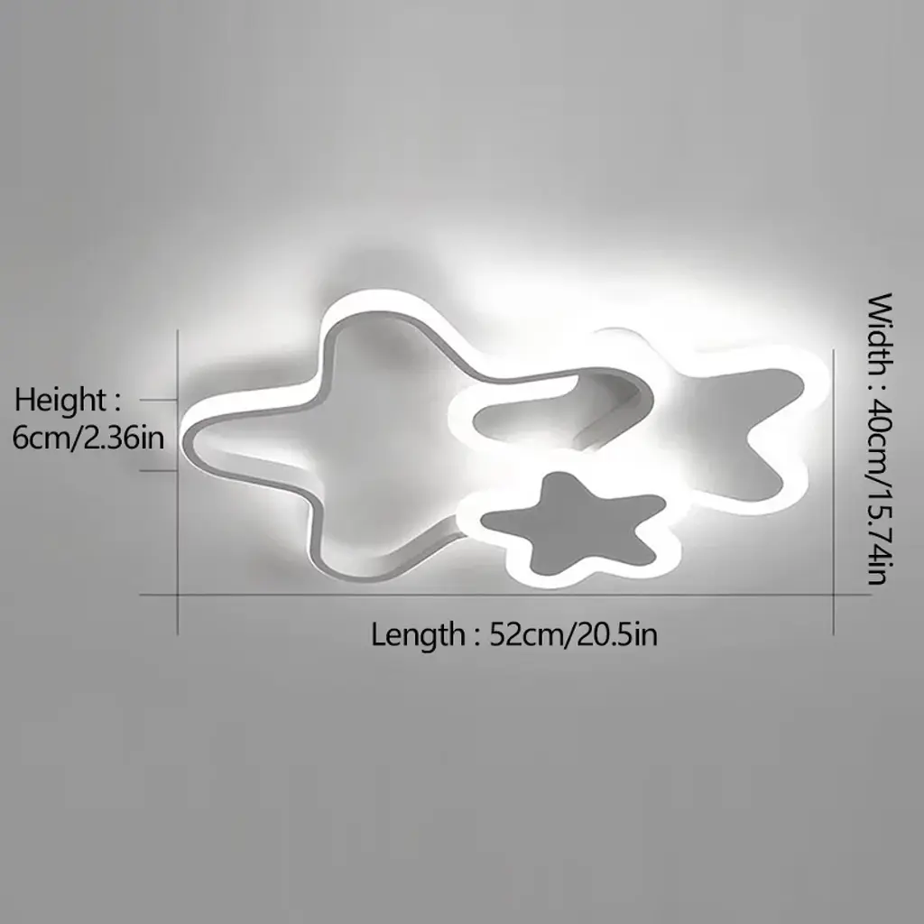 Brighten your home with this charming star-shaped ceiling light, a perfect blend of practical lighting and artistic decor. Crafted from durable, rust-resistant materials, it creates a warm and comfortable atmosphere in any room. With its dimmable LED light source, adjustable color temperatures, and convenient remote control, this fixture offers versatile and energy-efficient illumination. Easy to install and featuring a unique light-shadow effect, it’s an ideal choice for children’s rooms, bedrooms, or living spaces, and makes a delightful gift. Specifications Color: WhiteShape: StarMaterial: Aluminum, Acrylic, IronProcess: Baking PaintStyle: Modern Mount Type: Ceiling MountedAssembly Required: YesLight Source Type: LEDEfficiency: EControl Type: Remote ControlRemote Controller Battery Type: 2* AAA Batteries Remote Control Range: Within 20m/65.62ftLight Color: Warm, Natural, ColdBrightness Adjustable: YesColor Temperature: 2700K-6500K Power: 36WVoltage: 110VBeam Angle: 120°Illumination Area: 5-12m²/53.82-129.17ft²Product Size: 52*40*6cm/20.5*15.74*2.36in