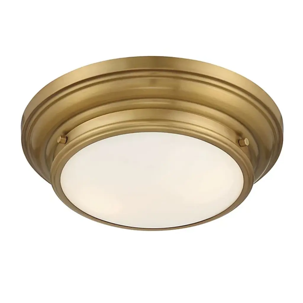 A timeless aesthetic. Lustrous aged brass and generous illumination for hallways and entryways. Energy efficient integrated LED's provide a long-lasting maintenance-free bright and even illumination. This flush mount can be mounted on the ceiling or wall.
