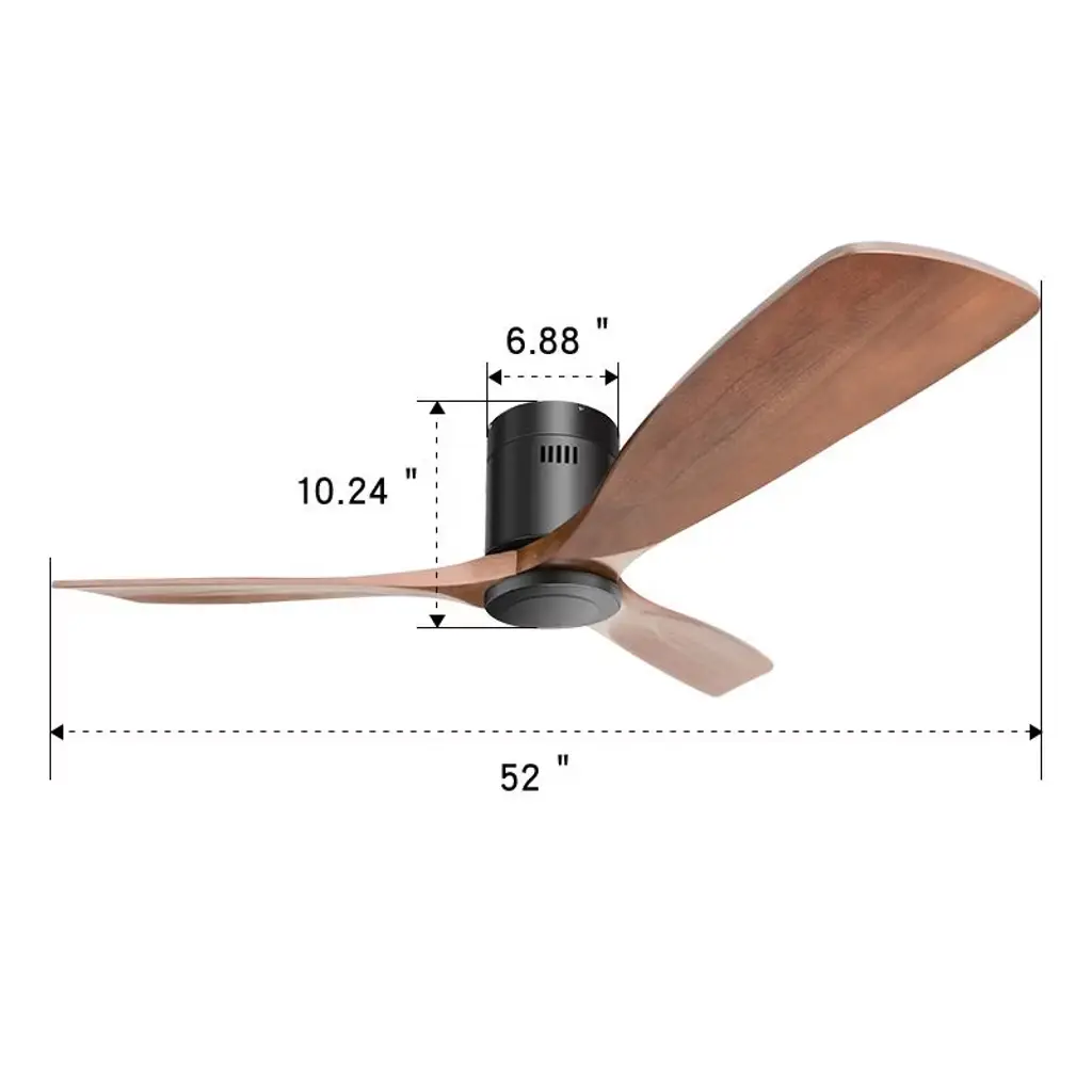 Modern Wooden Ceiling Fan Three beautiful parasol wood blades with rigorous craftsmanship and a smooth and delicate surface will add a modern design to your space. This is a modern style ceiling fan without light. Stylish in appearance, it can fit with your different decorative styles. Perfect for Patio, Living Room, Bedroom, cafe, etc. Reversible Ceiling Fan The walnut ceiling fan can be forward and reversible, perfectly circulates the air, keeping it nice and comfortable, so it can be available for four seasons. High Quality Ceiling Fan This ceiling fan features a high-capacity pure copper DC motor, delivering powerful airflow and ensuring years of quiet performance. With its durable and modern design, this 52-inch ceiling fan is perfect for medium to larger-sized rooms ranging from 150-320 sq.ft. Modern 52 Inch Ceiling Fan This ceiling fan without light, each piece is carefully designed and crafted. Great quality fan blades, which are with real solid wood blades instead of plastic. It gives the indoor/outdoor decor a touch of class and refinement.