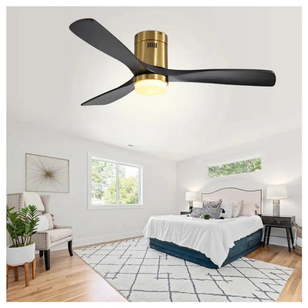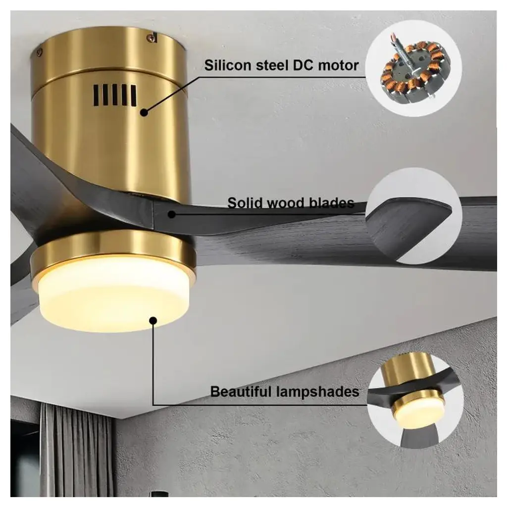 Yuhao 52 Inch Gold Flush Mount Noiseless Reversible Dc Motor Ceiling Fan With Light And Remote Control