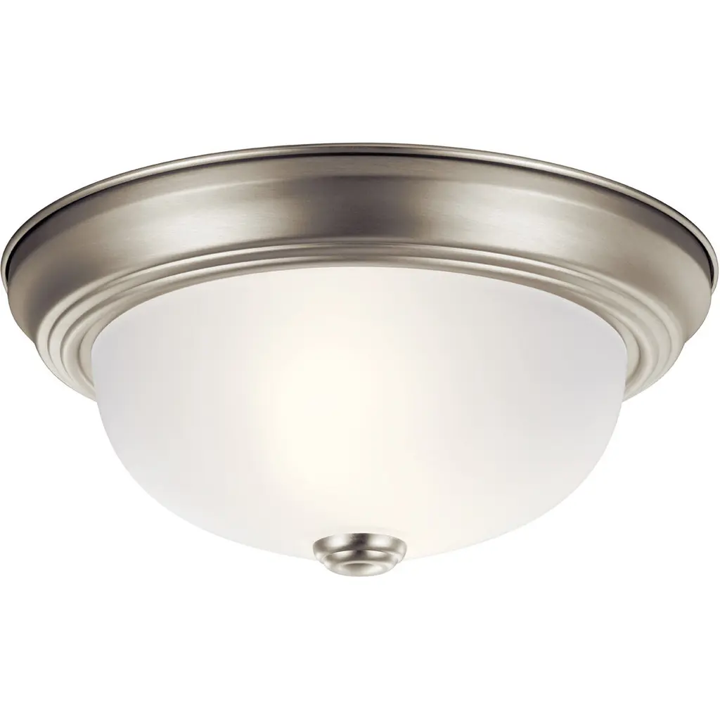 The graceful sweeping arms of the Brushed Nickel fixture synchronized with the elegant curves of the Matte Opal shades give the Ashton collection a classic yet contemporary presence. Bathroom/Bedroom/Dining Room/Dinette/Foyer/Game Room/Hallway/Kids Room/Kithcen/Kitchenette/Living Room/Office/Utility Room Shade Included: Yes Dimmable: Yes Material: Glass, Finish Color: Brushed Nickel, Width: 15", Height: 8", Hanging Method: Flush, Lamping Type: Incandescent, Number Of Bulbs: 3, Wattage: 60 Watts, Dimmable: Yes, Moisture Rating: Damp Rated