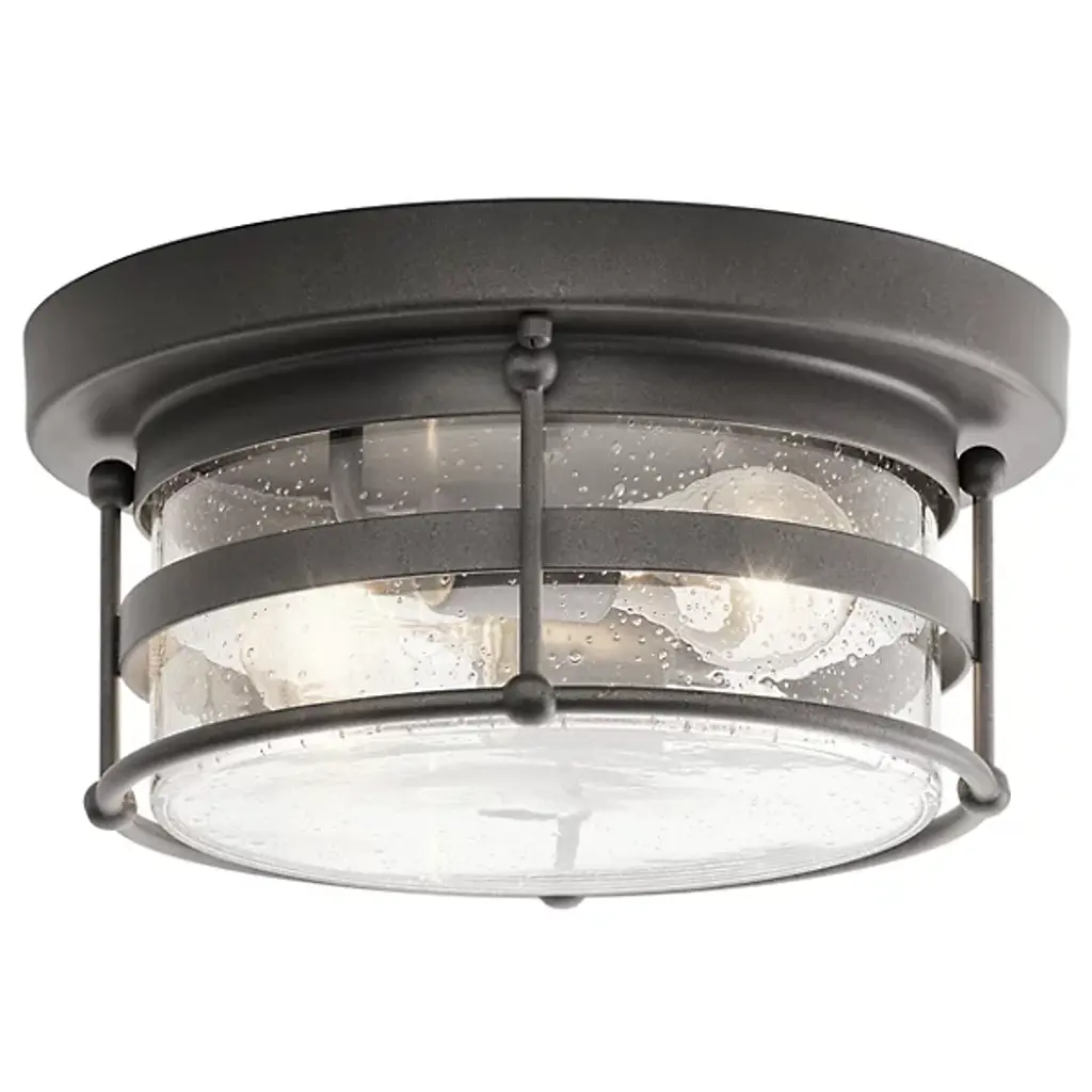 Cool industrial ambiance offers a stylish look to transitional spaces in need of functional, fashionable fixtures. With brilliant Chrome finish metal providing a circular cage-like frame and a wide cylindrical clear seedy glass shade completing its visual package, this two-light flush mount ceiling light wraps up a custom kitchen or living area design. Bedroom/Dining Room/Foyer/Hallway/Kids Room/Kitchen/Living Room/Office/Utility Room Shade Included: Yes Dimmable: Yes