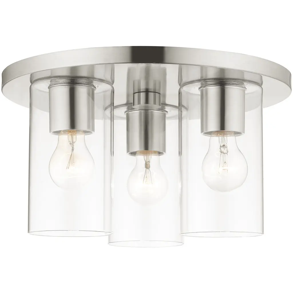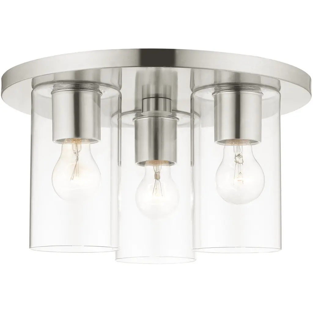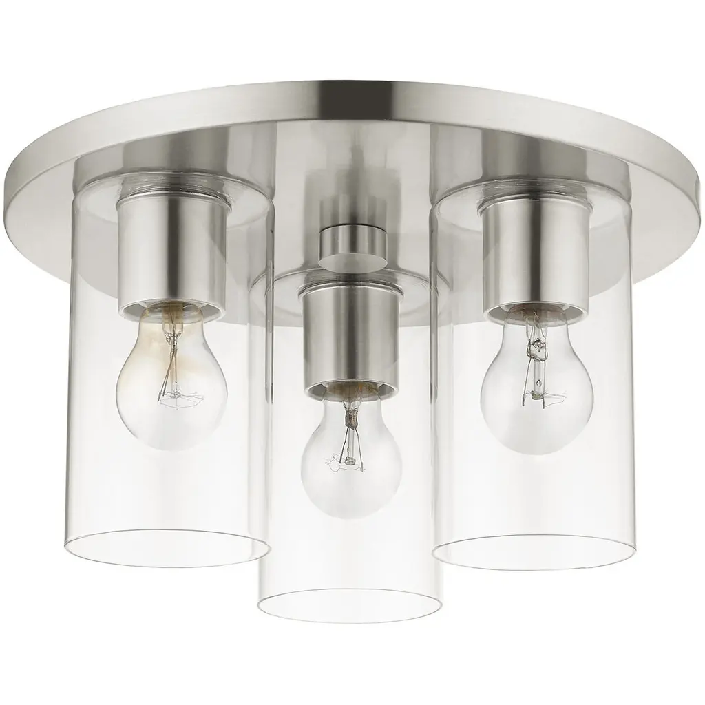Zurich 3 Light 14 Inch Brushed Nickel Flush Mount Ceiling Light