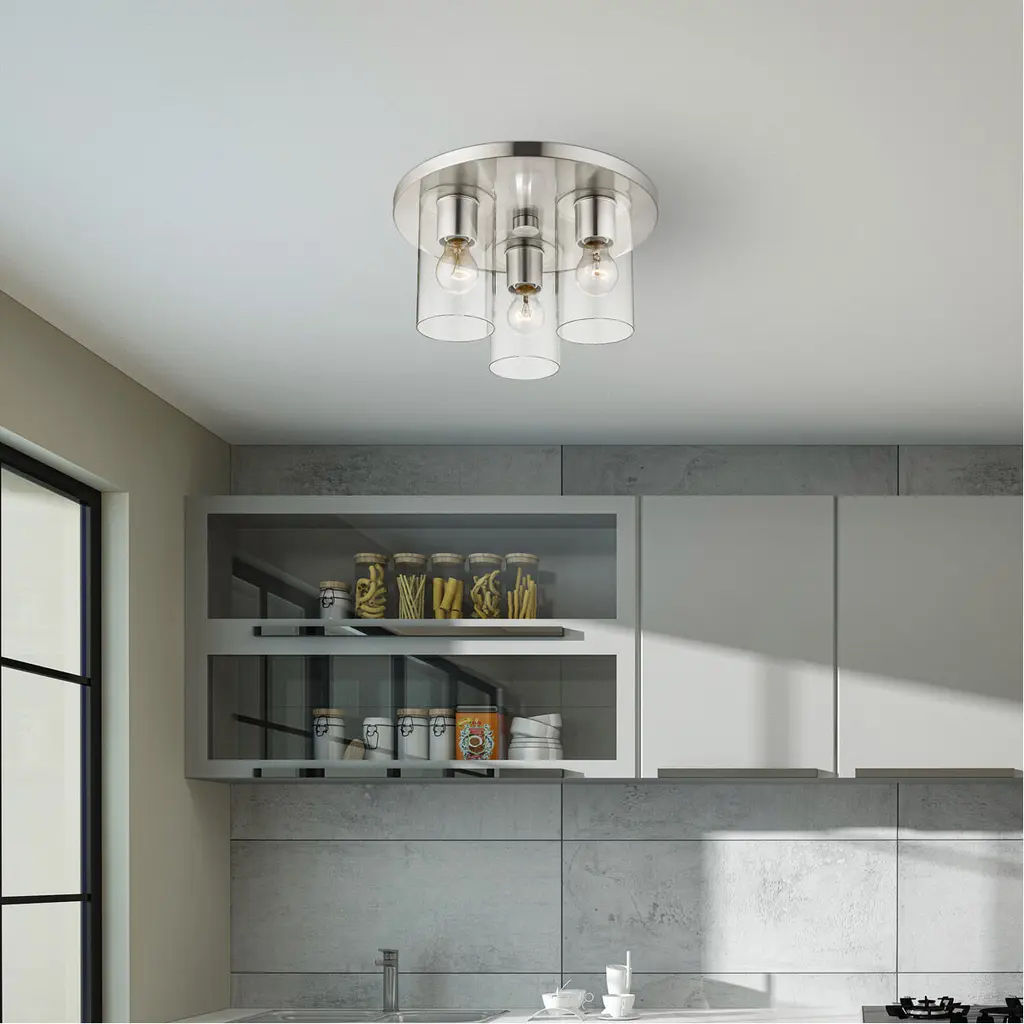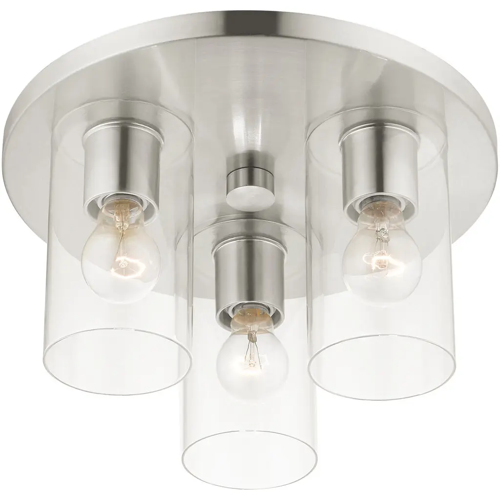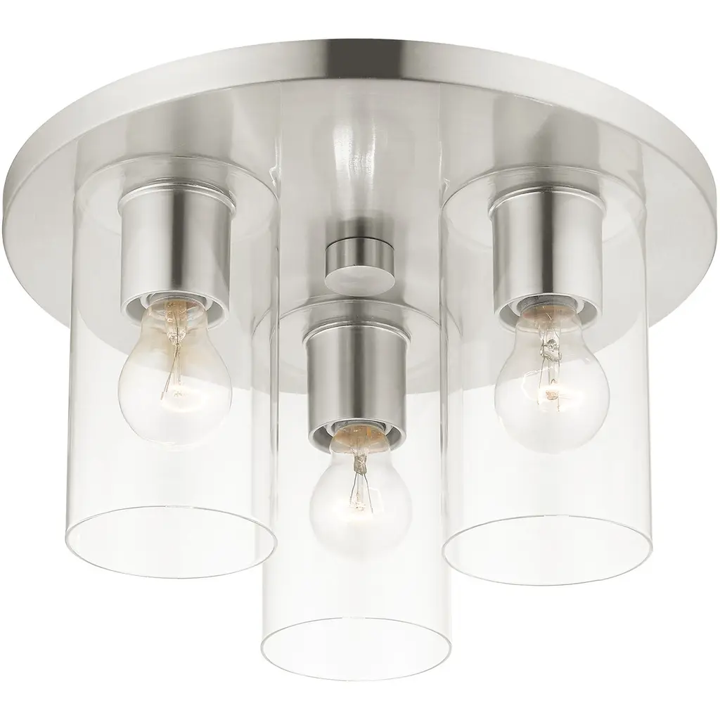Zurich 3 Light 14 Inch Brushed Nickel Flush Mount Ceiling Light
