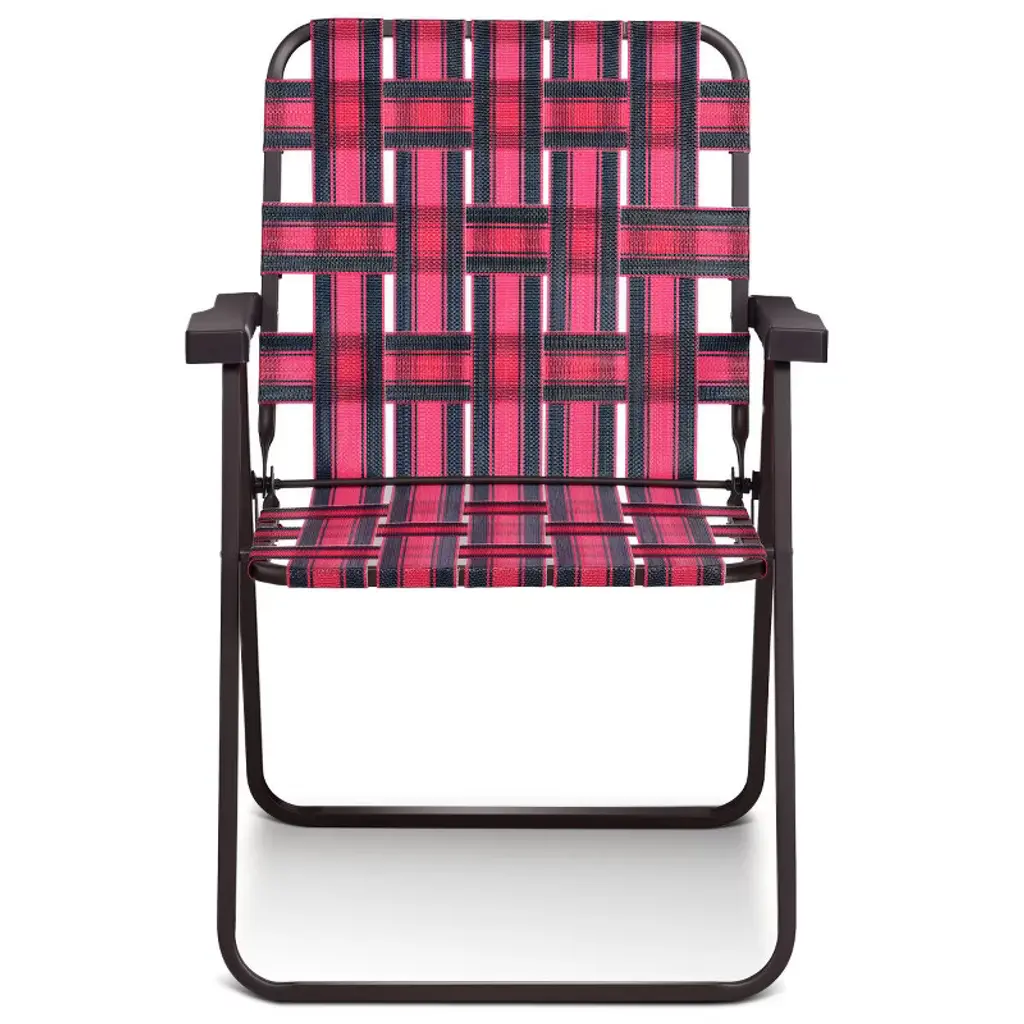 Costway 6Pcs Folding Beach Chair Camping Lawn Webbing Chair Lightweight 1 Position Red