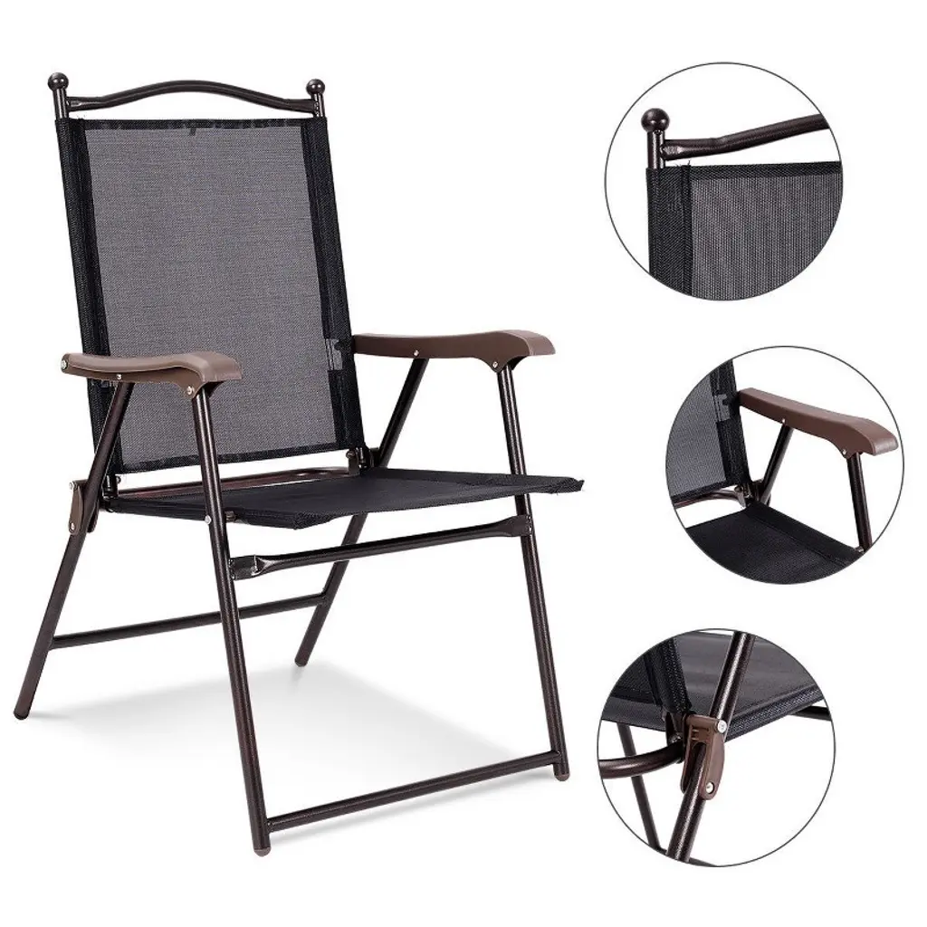 Costway Set Of 2 Patio Folding Sling Back Chairs Camping Deck Garden Beach Black